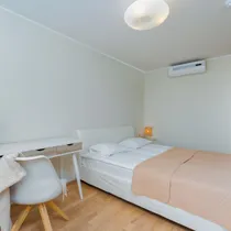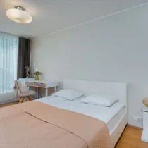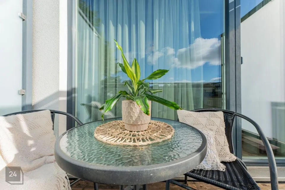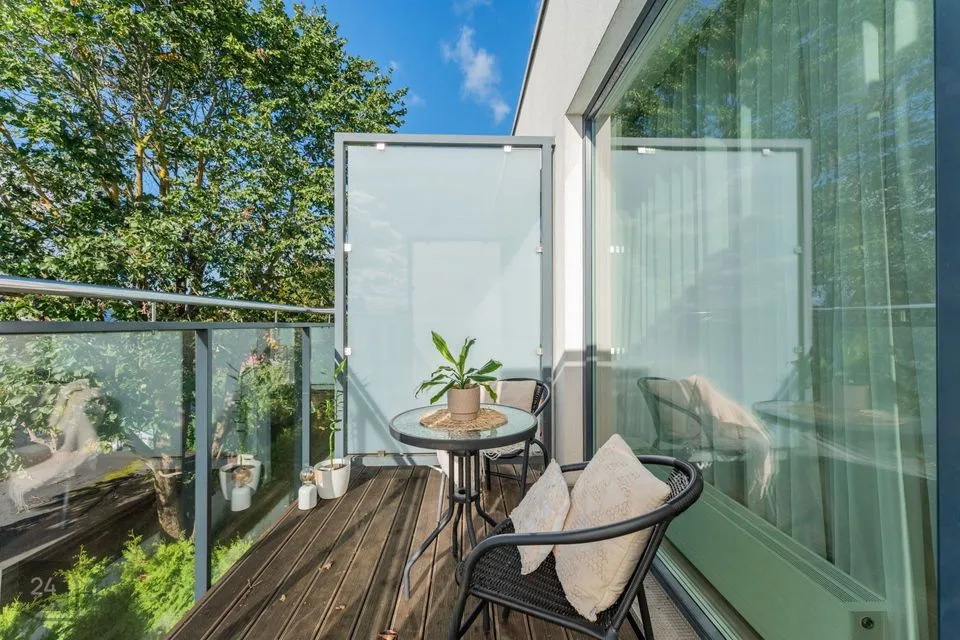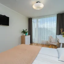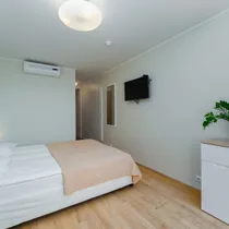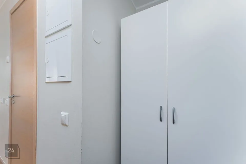 Korteri koosseisu kuulub esik riidekapiga, ruumikas elutuba/magamistuba voodi ja muu vajaliku mööbliga, samuti on olemas külmik ja televiisor. Korteril on ka päevase päikse poole suunatud hubane rõdu. WC ja vannituba on koos.