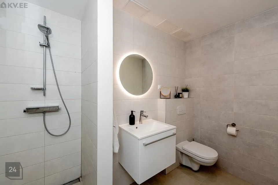 Läbimõeldud ruumilahendusega I korruse korteris on üks magamistuba, avar vannituba, elutuba-köök ning ülisuur päikesepoolne terrass. Terrassile pääseb nii elutoast, kui ka magamistoast. Korteris sees on ka panipaik/garderoob. Korter on varustatud reguleeritava soojustagastusega sundventilatsiooniga. Korterile kuulub üks kindel parkimiskoht maja ees.