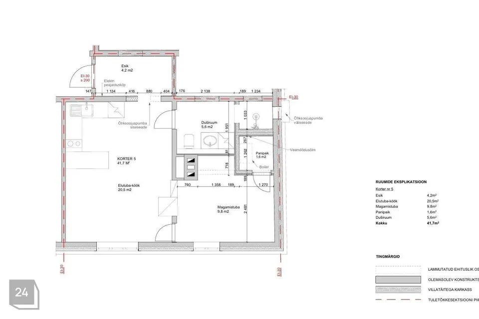 PLANEERING: korteri koosseisu kuuluvad esik, köök, elutuba, magamistuba , tualett -dušširuum ja panipaik.
