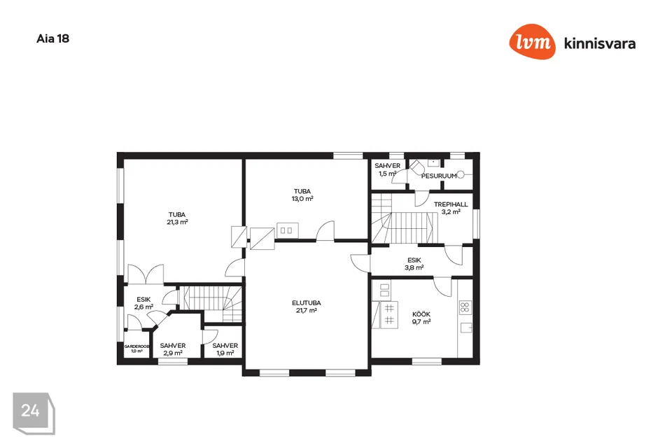 Elutoast on pääs mõlemasse magamistuppa. Korteri eluruume on võimalik laiendada panipaikade arvelt.