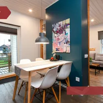 Ideaalne kodu väiksemale leibkonnale, kes ei ole korteri inimesed aga suure maja omanik ka ei tahaks olla. Siinses kodus elad kui majas (loe majaosas), naabriks vaid teise korruse hea omanik.