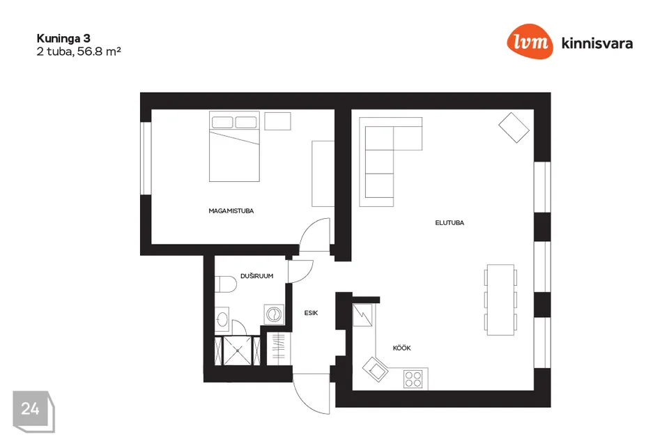 Renoveerimistööd on tehtud 2024 aastal. Suurepärase sisekujundusega korter on valmis koheseks sissekolimiseks. Mööbel sisaldub hinnas.