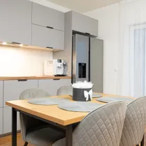 Avatud köök (aasta alguses paigaldatud uue mööbli ja kvaliteetse tehnikaga) on ühendatud elutoaga, moodustades hubase ja praktilise eluruumi. Avar rõdu, kus hommikukohvi nautida või mänguväljakul lustivatel lastel silma peal hoida. Korteris on kaks magamistuba, pesuruum kvaliteetse Hansgrohe sanitaartehnikaga, ning avar esik koos riiete hoiustamissüsteemiga. Aknad sisehoovi ja mänguväljakule. Mugavust lisab suur rõdu. Avar köök-elutuba on sisustatud moodsa köögimööbli ja väga korraliku köögitehnikaga. Soojustagastusega ventilatsioon, tubade kaupa reguleeritav vesipõrandaküte, keskkütte baasil. Kaugloetavad arvestid.