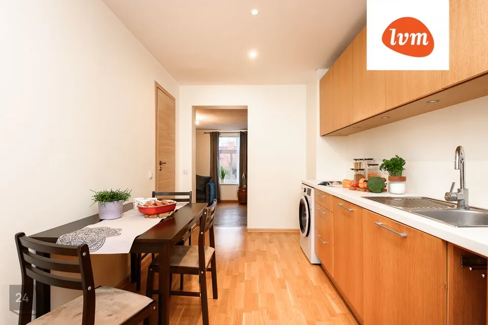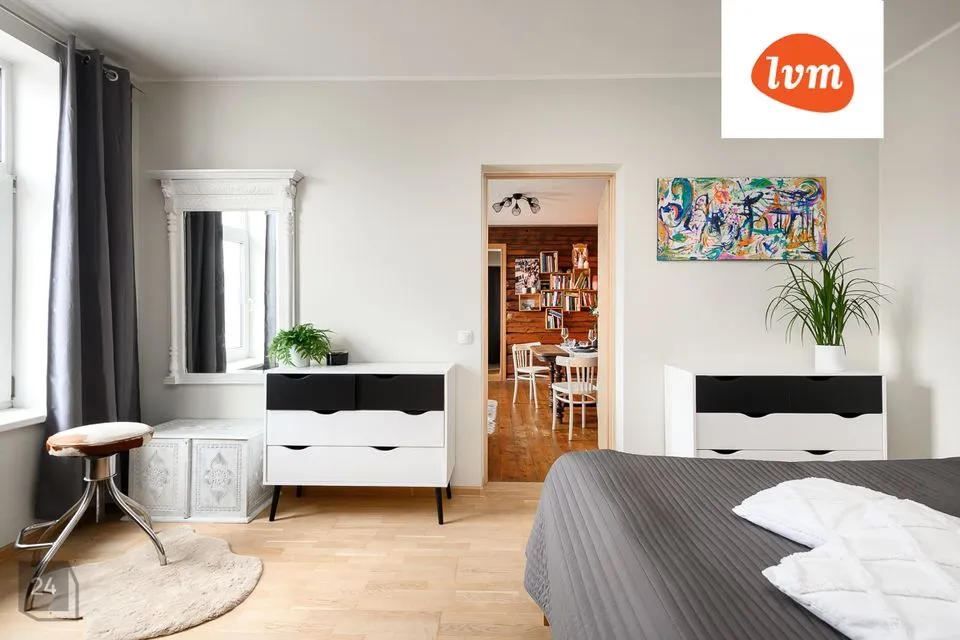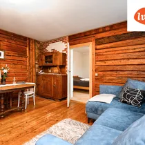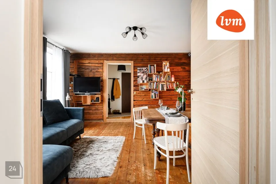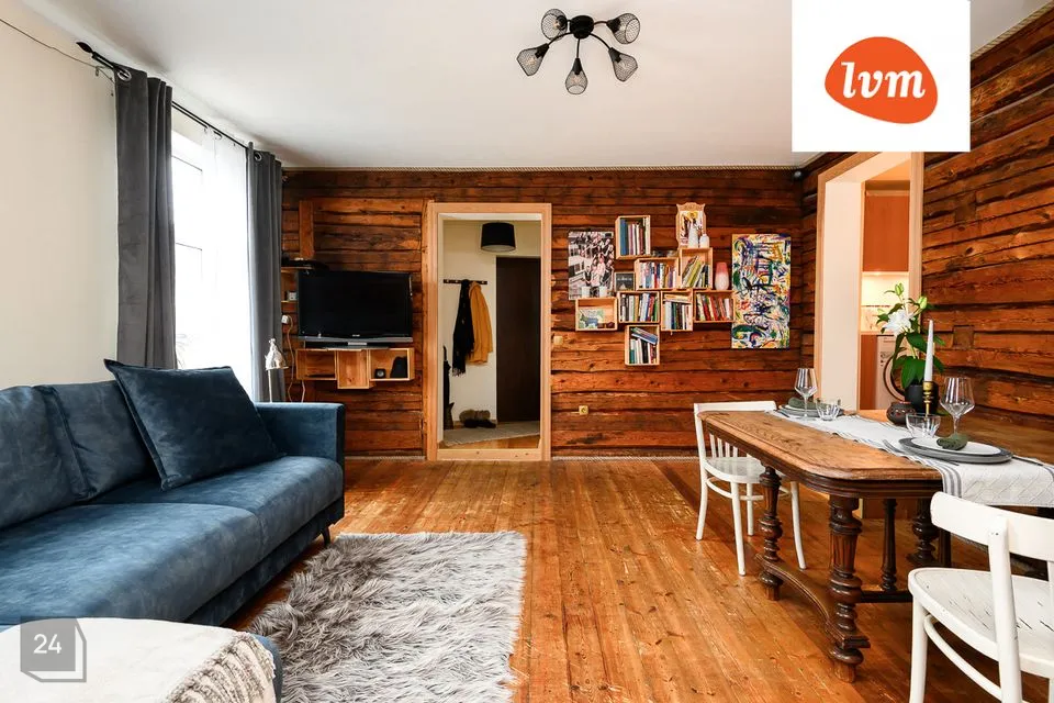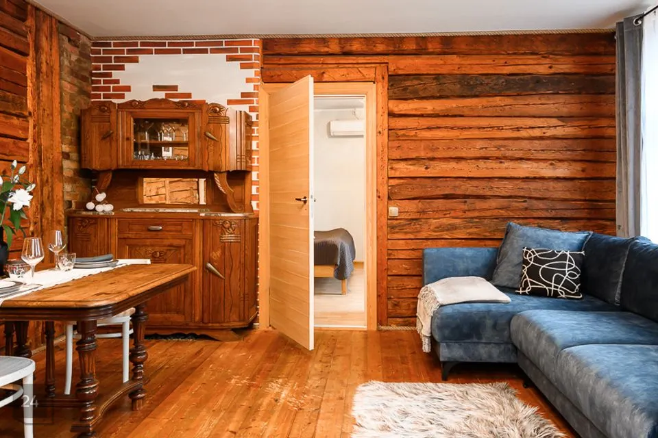 Puitmaja teisele korrusele viib hoone ajaloolise hõnguga sobilik kaarjas trepp. Siit leiab karakteriga kodu, kus eksponeeritud palkseinad, vanad põrandalauad ja antiiksed kummutid kujundavad meeleolu ning loovad stiili. Läbi maja planeeringuga korterisse pääseb päikesevalgus mitme erineva nurga alt ning kõrged laed annavad näilist avarust juurde. Toad paikneb kahes erinevas tiivas, mille keskosas on köök ja dušširuum. Korter vajab värskendust. Köetakse ahju ja õhksoojuspumbaga. Dušširuumis põrandaküte.