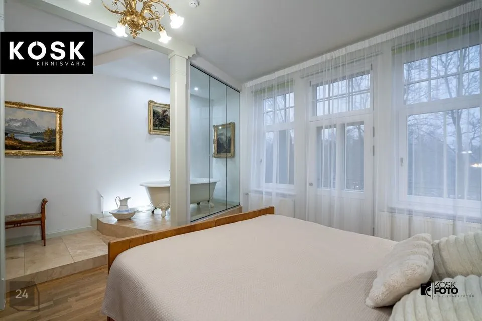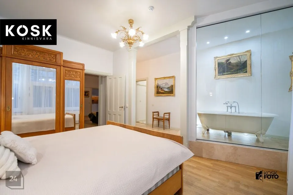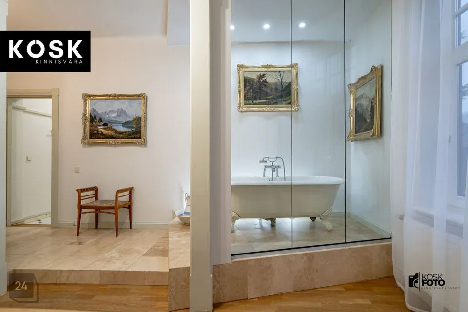 Eluruumide üldpind on kokku 70m². Korterit ilmestab magamistoas asuv avatud vannitoa osa. Lisaks eraldi vannituba dushiga.