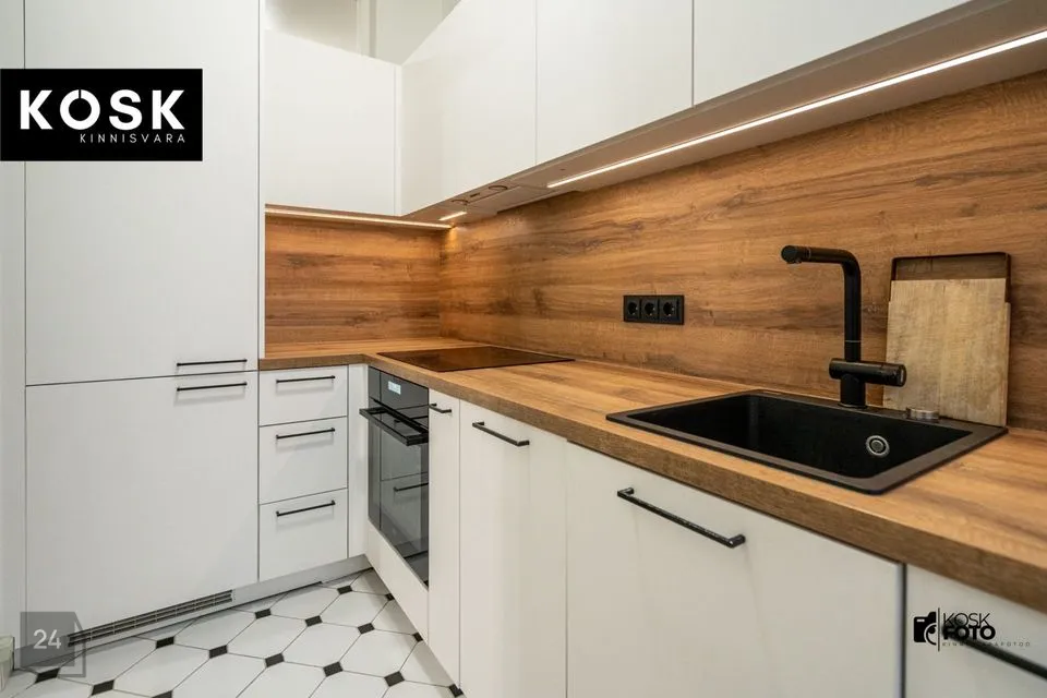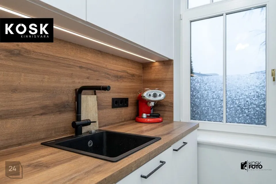 Köök asetseb eraldi ruumis, põrandaküttega ja maja ette vaatega