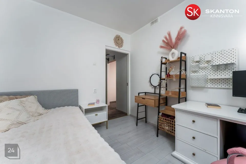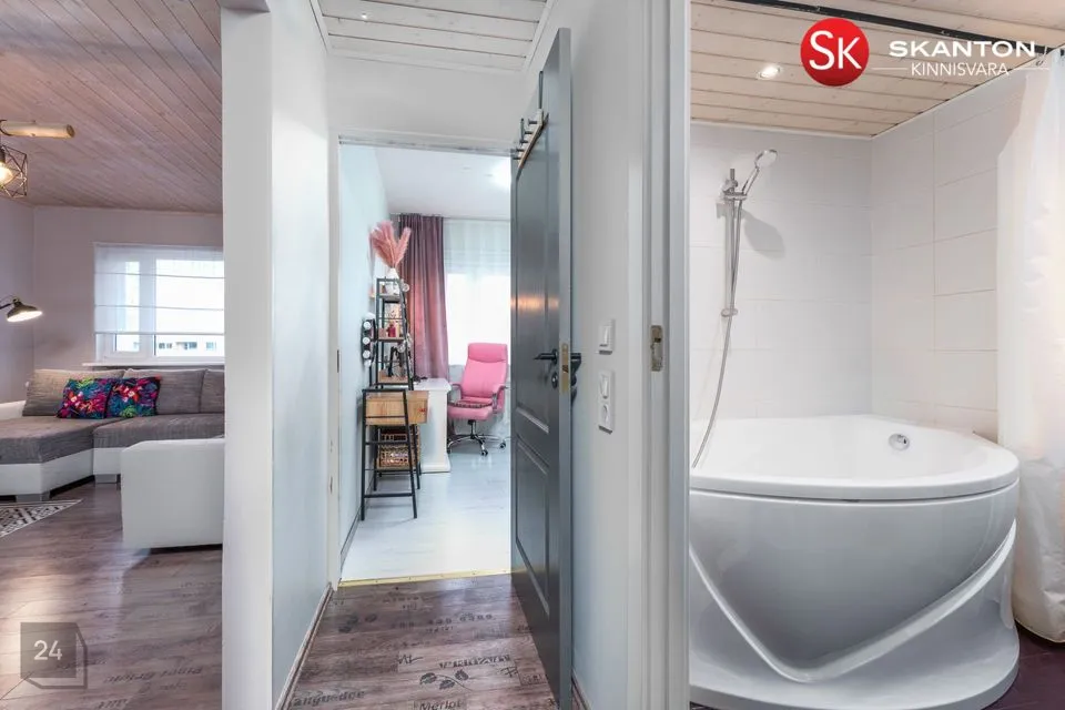 Korteri üldilme on neutraalne ja kaasaegne. Heledates toonides värvitud seinad ja laminaatparkett loovad avara ja hubase tunde. Märgruume ilmestavad keraamilised plaadid, lagedele lisab soojust naturaalne puit.