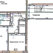PLANEERING: eluruumi pind on kokku 47,3m². Korteri koosseisu kuuluvad: esik, avatud köök-elutuba, magamistuba, tualett-dušširuum ja panipaik. Korterile paigaldatud turvalukustus.