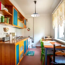 Läbi maja korteril on kolm eraldi tuba ja avar köök.