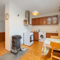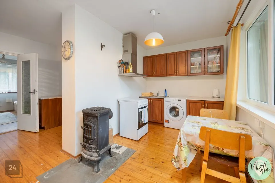 Korter asub 1 korrusel ja on läbi maja planeeringuga. Korteri koosseisu kuulub esik, köök koos köögimööbli ja kõige vajamineva tehnikaga ning vannituba vanniga ja WC. Köögist on pääs avarale klaasitud rõdule. Korteri kütte liigiks on kamin/ahi lisaks elekter küte. Soe vesi 100l. elektriboilerist. Tsentraalne vesi ja kanalisatsioon.