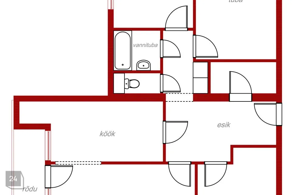 Müüa 4-toaline hea planeeringuga korter, mis asub kolmekorruselise korterelamu esimesel korrusel. Planeering läbi maja- esik-koridor, köök, elutuba, 3 magamistuba, vannituba, WC. Elutoa ja köögiga külgneb suur rõdu (5,9 m2). Lisaks on korteris ka 2 panipaika (sahvrit). Kõik toad on eraldi asetsevad.