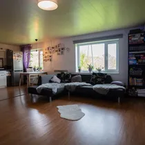 elutuba-köök mis moodustab pere elutsooni ja seetõttu on köök läbikäidav, kõik ülejäänud toad on eraldi sissepääsuga. Olemas on esik, pesuruum, WC ja puuküttega saun. Ruumid on avarad.