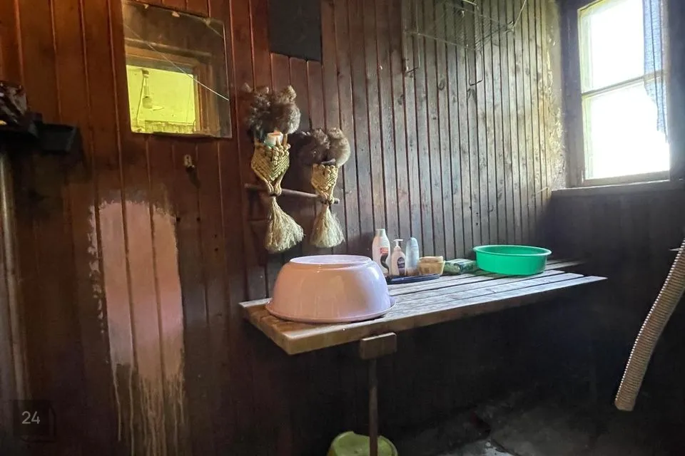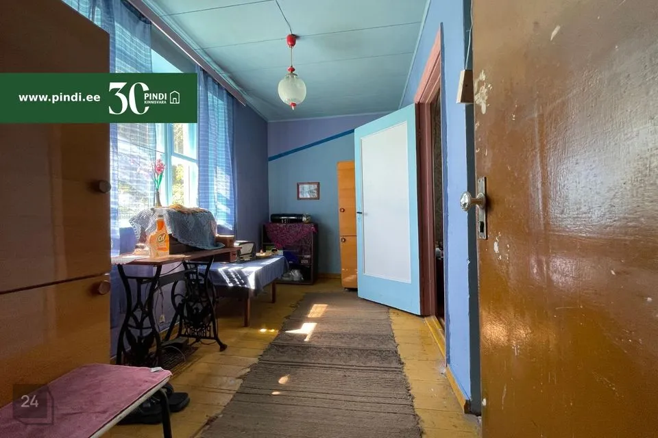 Välisuksest sisenedes astudki koridori, paremal pool on uks, uksest sisenedes on väike puupliit ja wc ning kraaniukauss. Ruum, mida on kunagi ilmselt köögina kasutatud. Sellest samast ruumist paistab uks, kui uksest siseneda on seal suur avatud tuba, mida saab kindlasti mitmeks jaotada ja hetkel on seda tehtud sektsioonkapiga.