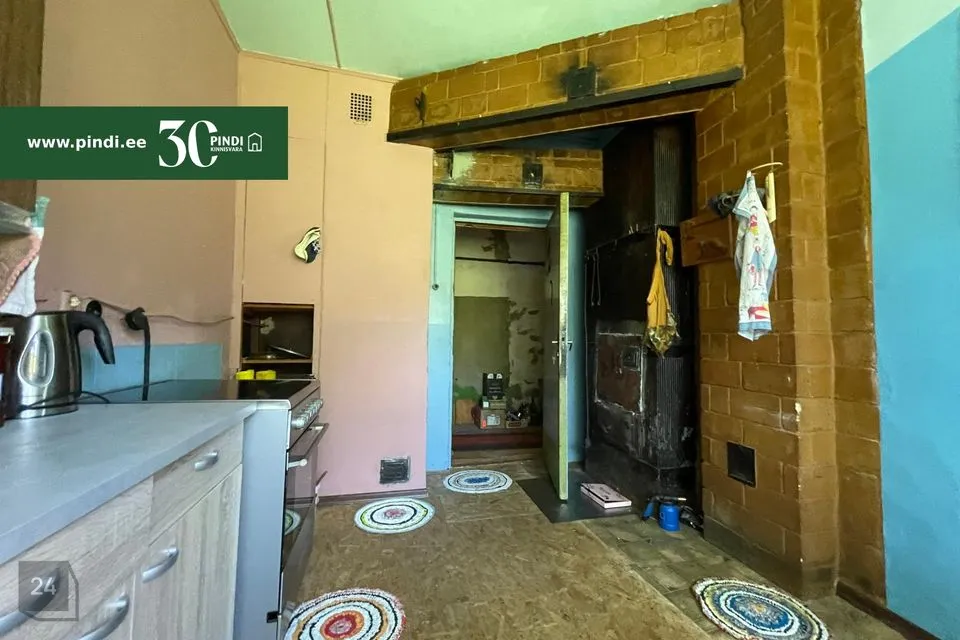 Siis tuleb uuesti läbi praeguse töötoa/hoiuruumi minna tagasi pikka koridori, otse viib uks kööki, kus on olemas veidi tänapäevasem lahendus, mida saab edukalt ajutiselt kasutada. Seal on olemas ka ahi.
