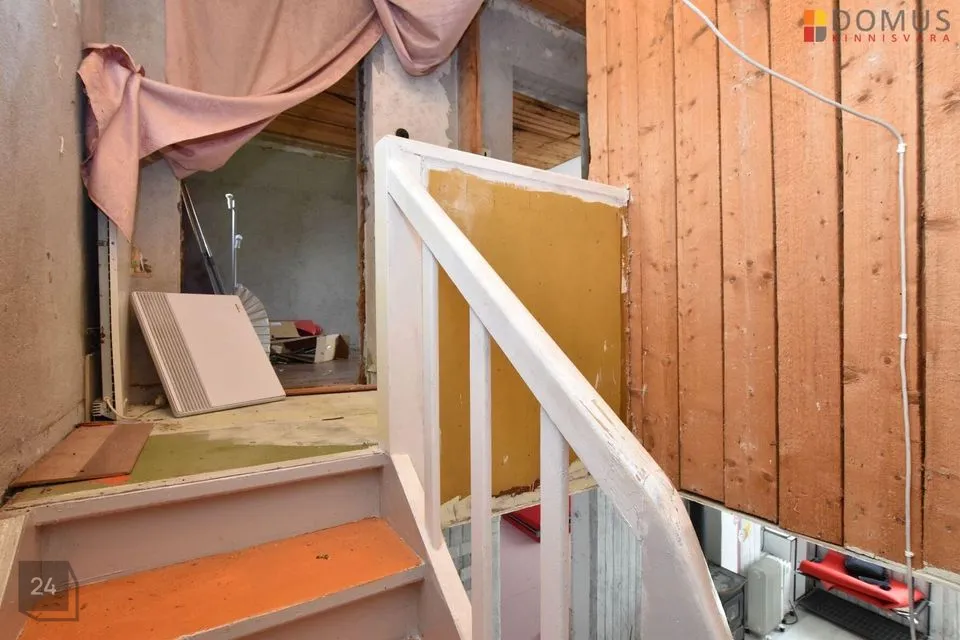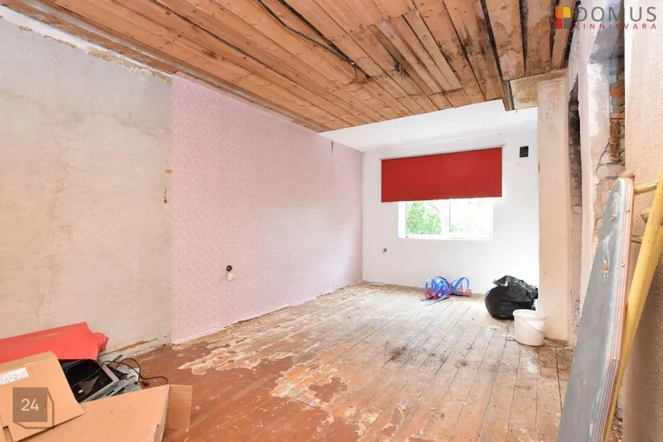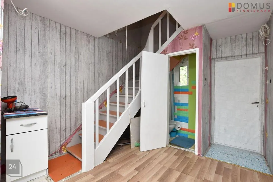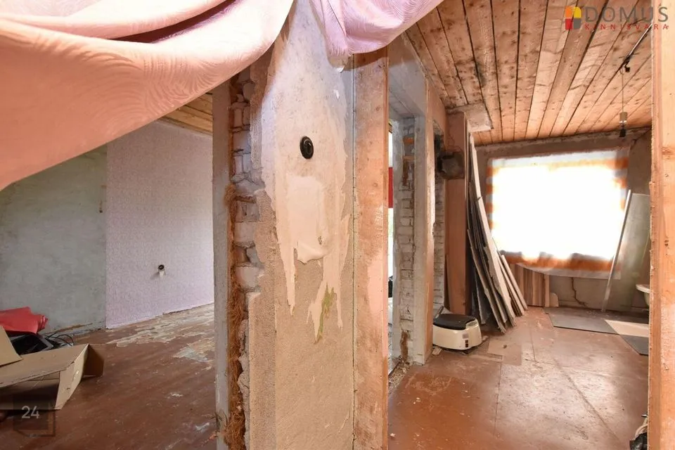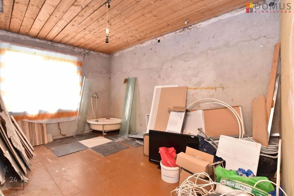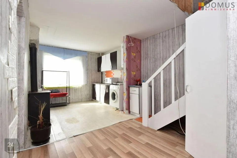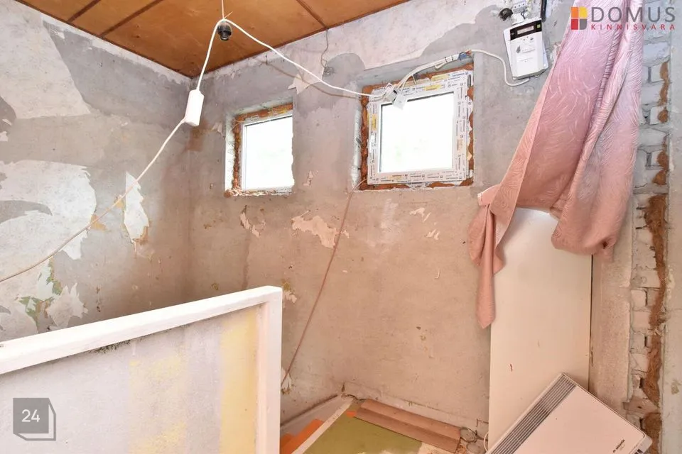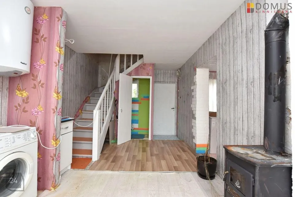 Väga hea planeering – esimesel korrusel suur ja avar köök, läbi maja planeeringuga elutuba ning wc. Teisel korrusel kaks magamistuba. Pesuruum väljaehitamata. Osaliselt on välja vahetatud elektrijuhtmestik, vahetatud on aknad, välja on lõhutud teise korruse ahi, eluruum vajab kapitaalremonti. Kütteks on esimese korruse ahi ja elektriradiaatorid, sooja vee annab boiler.