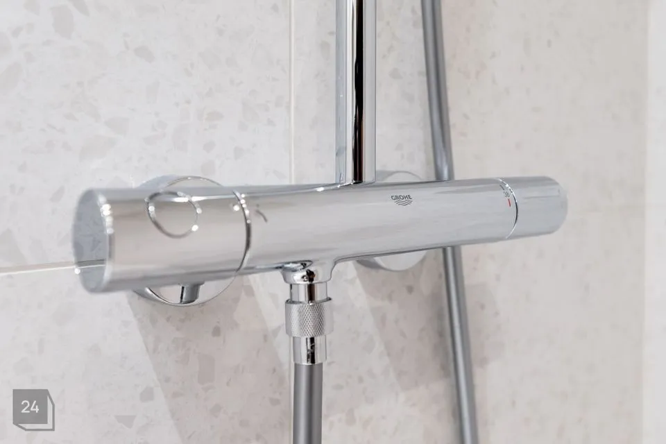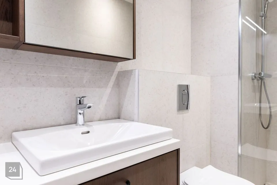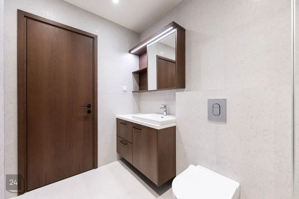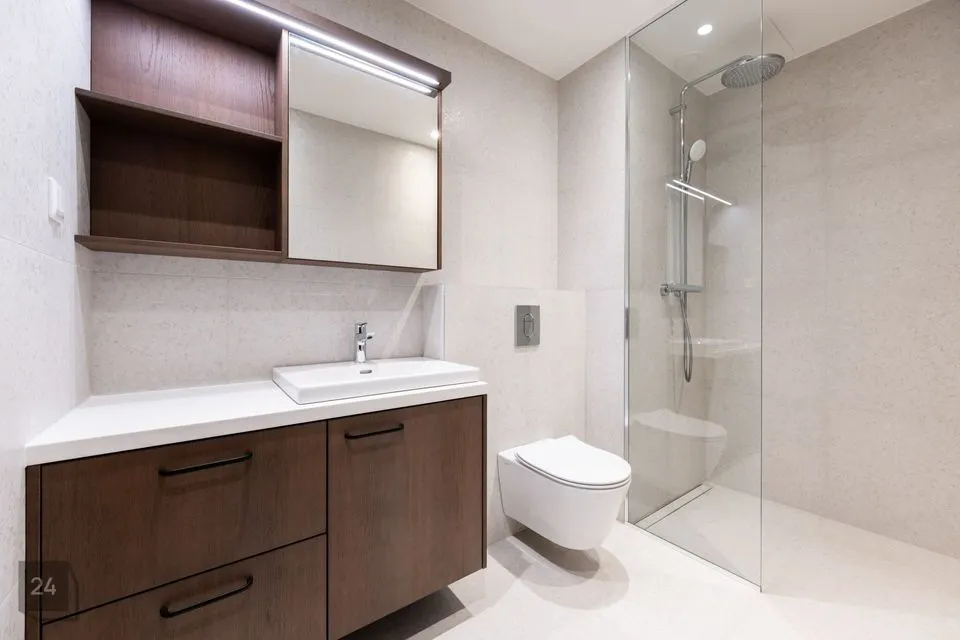 Korteri viimistlus on tehtud maitsekalt ja kaasaegselt. Maast-laeni aknad toovad tuppa palju naturaalset valgust.