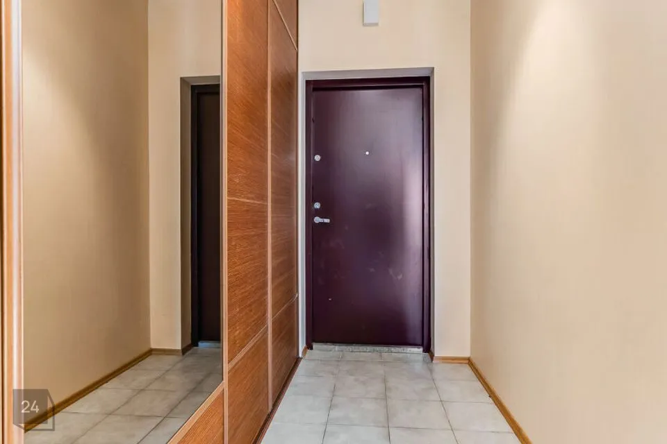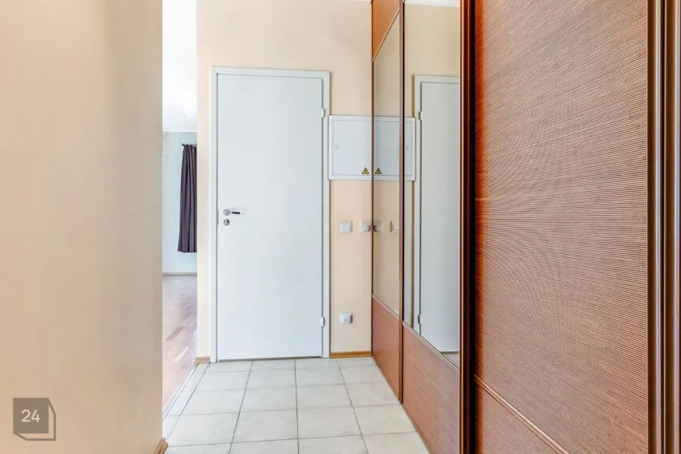 Korteri siseviimistluses on kasutatud heledaid toone, rõhutades korteri valgusküllasust ja avarust. Karakterit on sisse toodud tumedama köögi ning aktsentseinadega. Põrandale on paigaldatud soojas toonis naturaalne kolme lipiline parkett ning vannitubades ja esikus on kasutatud keraamilisi plaate.