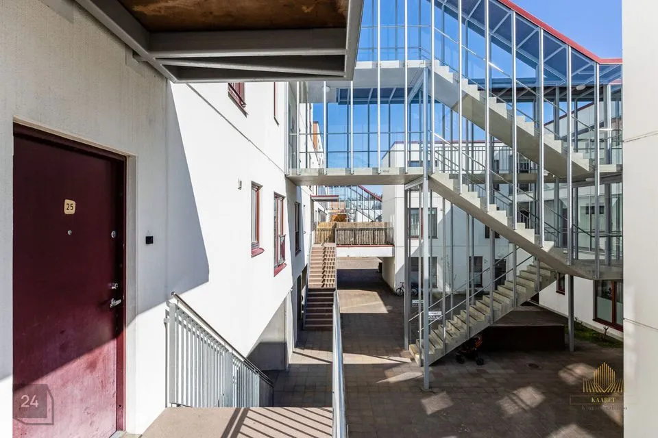 Korteri juurde kuulub hubane ning privaatne rõdu, kus on mõnus soojal suvaõhtul aega veeta. Maja asub vaiksel tupiktänaval, kus on palju rohelust ning maja taga asuv pargiala. Pargis on valgustatud jalutus-jooksurajad (sh niiskemates kohtades maapinna kohale rajatud laudrajad), kuivenduskraave ületavad sillad, kaks laste mänguväljakut ja korvpalliplats. Park on peetrilaste seas populaarne sportimis- ja jalutamiskoht.