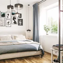 Korteri koosseisu kuulub suur esik koos eraldi garderoobiga, vannituba dušši ja wc-ga, avar köök-elutuba, kust on pääs rõdule ja avar magamistuba.