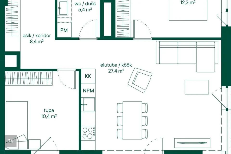 * Kuulutuses olevad pildid on illustratiivsed (kajastavad juba valminud etappi), kuna antud hoone ja korter pole veel valminud.