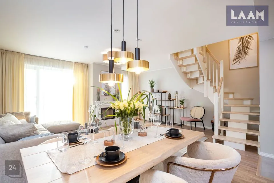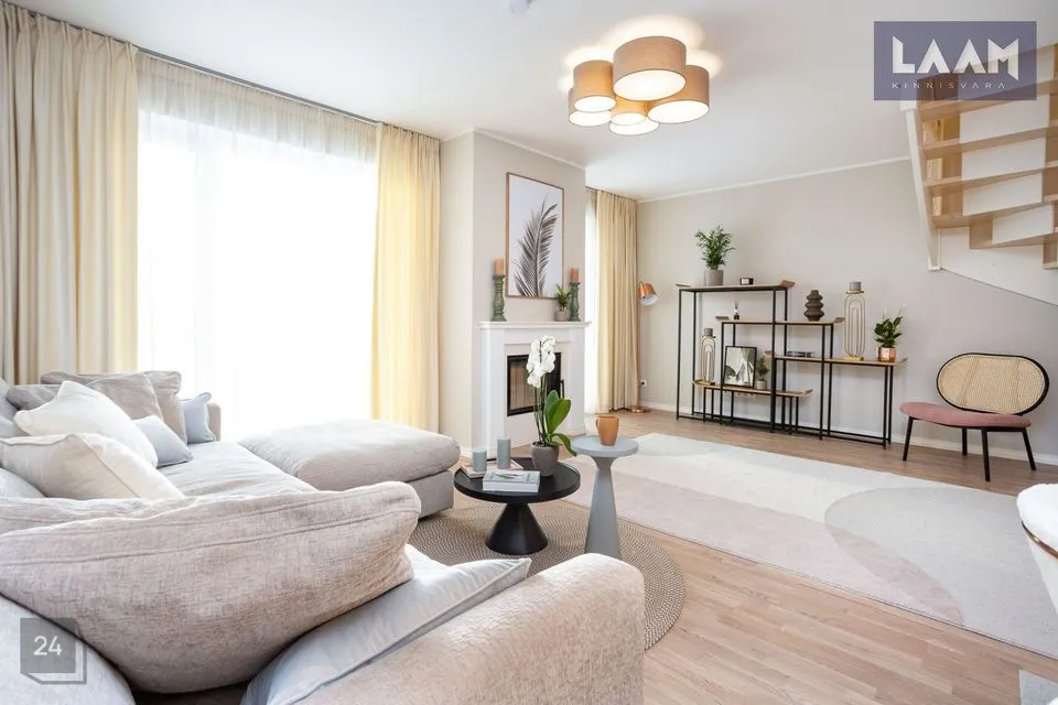 Ridaelamu kroonjuveeliks on esimesel korrusel asuv avar ja valgusküllane elutuba suurusega 36 m2. Privaatse nurgaga köögiala ( 5,9 m2) on ühendatud elutoaga.