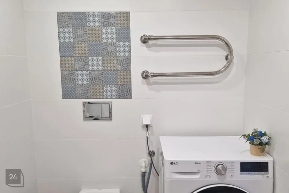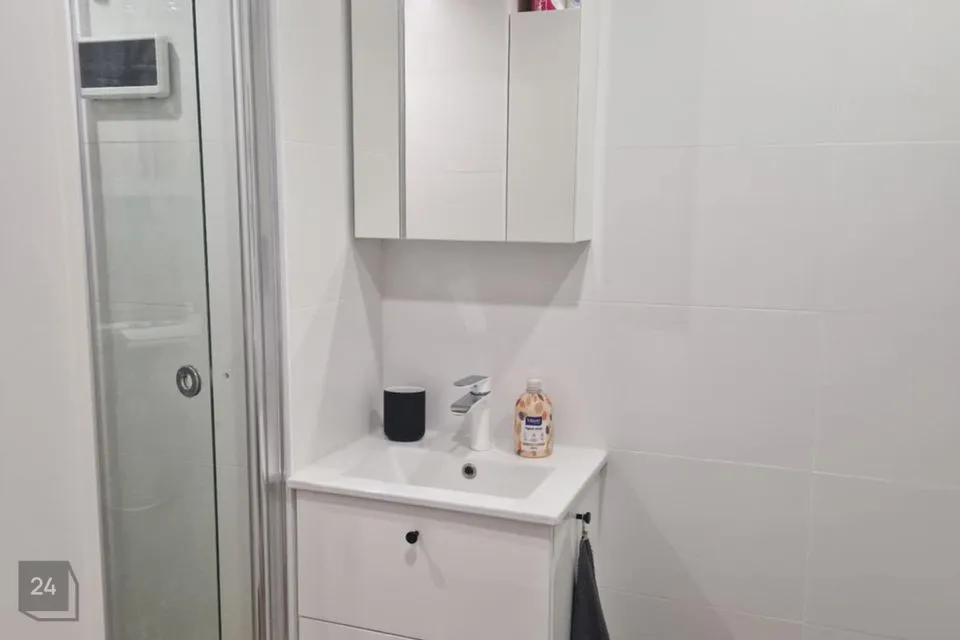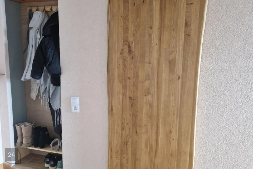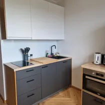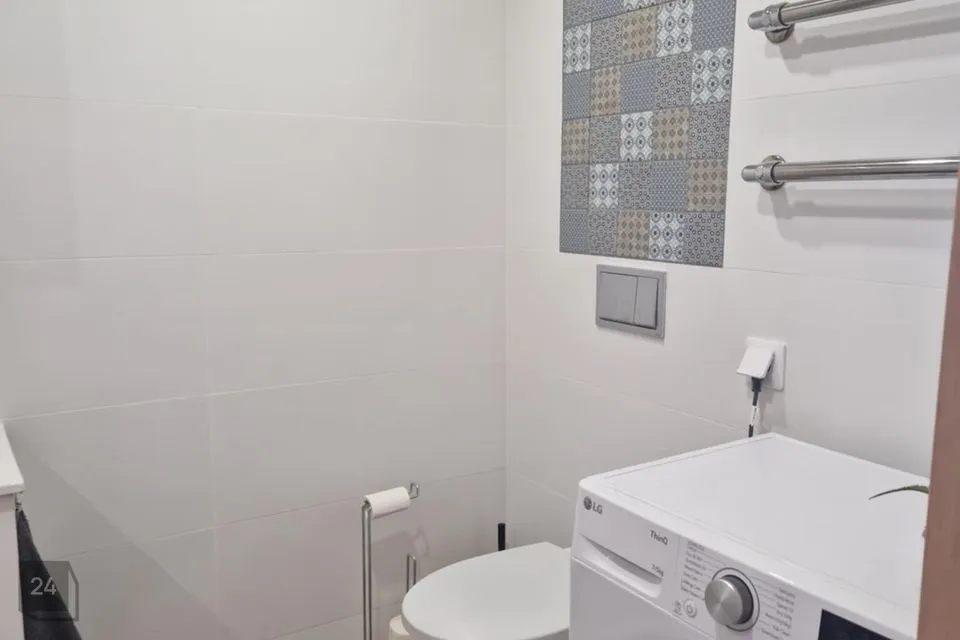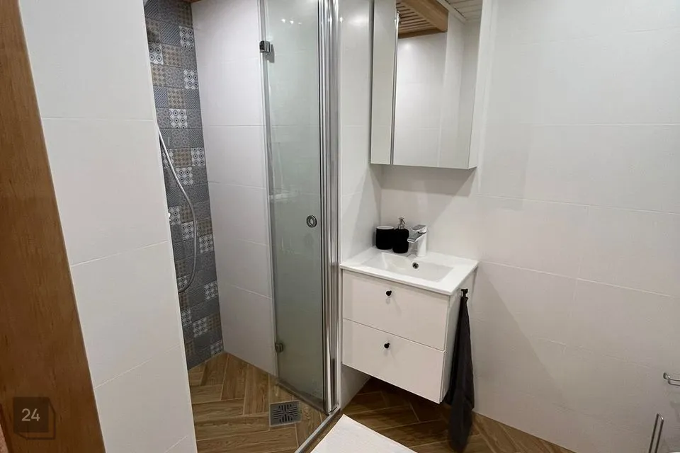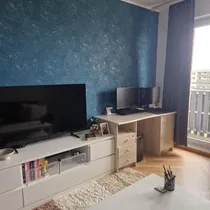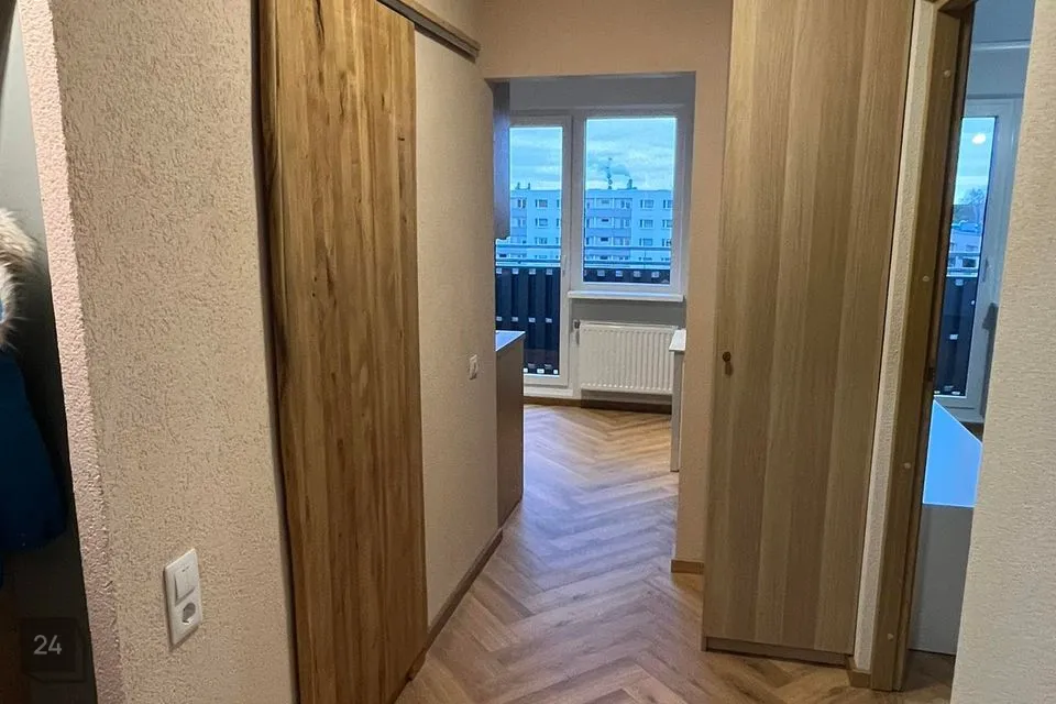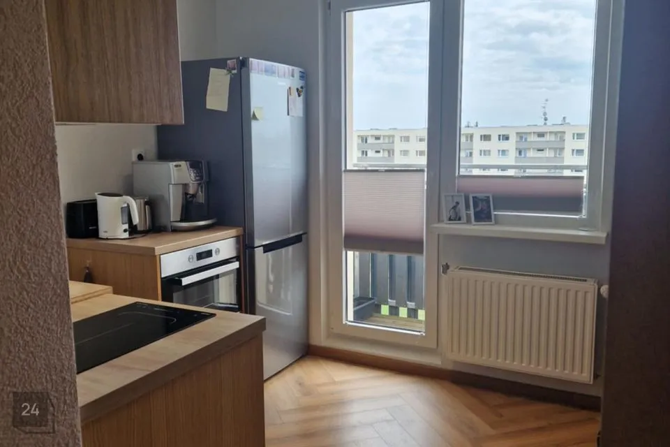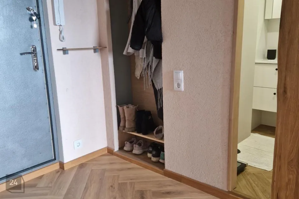 Köök köögimööbli ja tehnikaga. Köögist pääseb topelt suurusega rõdule. Suur tuba kust pääseb samuti rõdule; wc ja dušši ruum. Wc ja pesuruum on avar, plaaditud ja eraldi dušši nurgaga. Avar esik, kus on riidekapp. Korteri põrandaid katab kalasaba laminaatparkett.