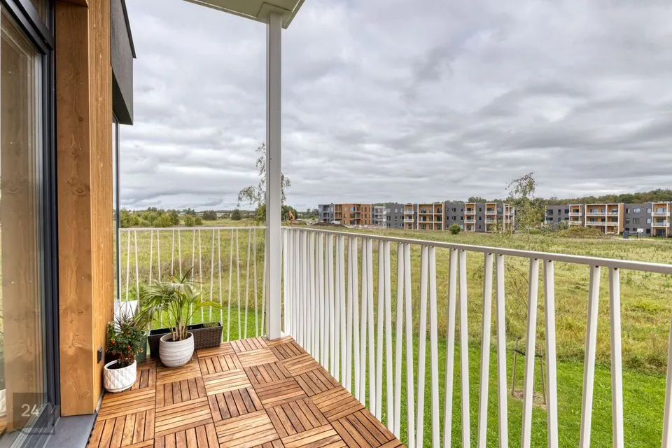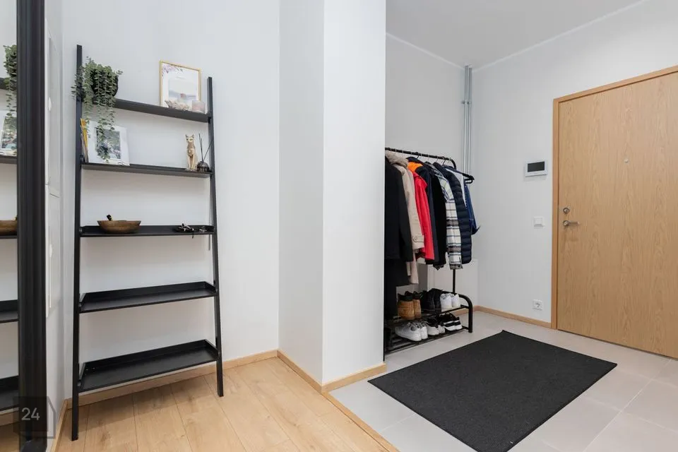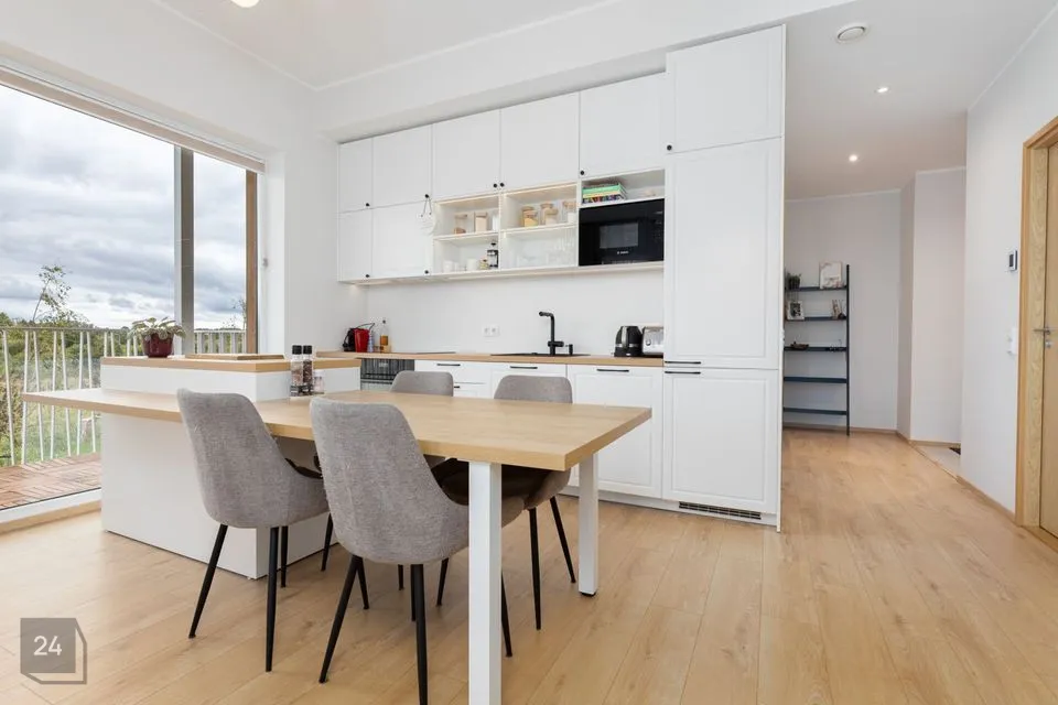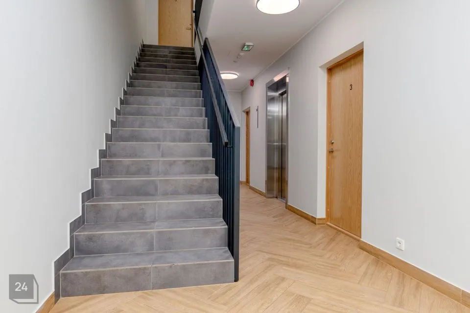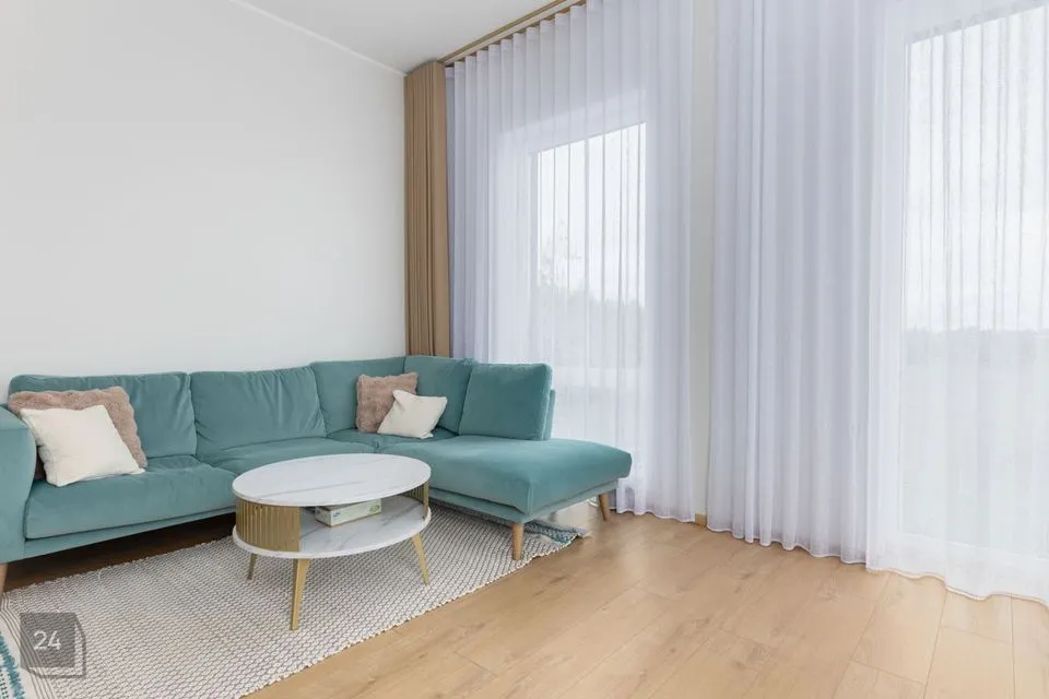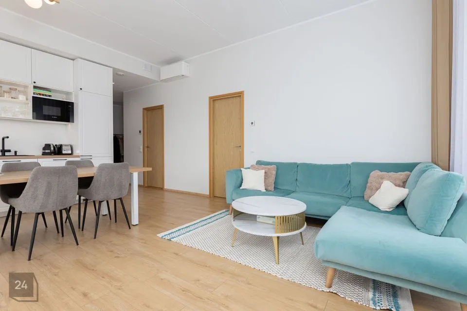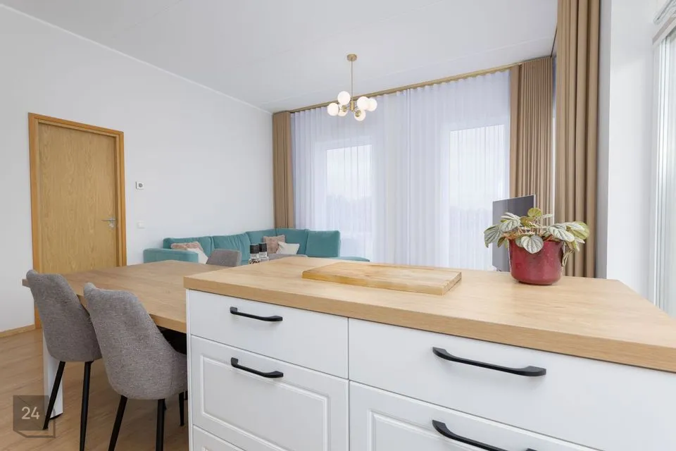 Hele ja hubane interjöör naturaalsetes toonides. Suured PVC aknad, kolmekordne klaaspakett– seest valged, väljast tumehallid – toovad tuppa rohkelt valgust ja avarust. Põrandatel naturaalset tamme tooni laminaatparkett. Ruumipõhiselt juhitav vesipõrandaküte, vannitoas lisaks elektripõrandaküte. Korteripõhine energiatagastusega mehaaniline sissepuhke-väljatõmbe süsteem, ventilatsiooniagregaat on peidus vannitoa lae taga. Lisamugavusena on elutoas konditsioneer. Kvaliteetne integreeritud köögimööbel koos tehnikaga. Rõdult avarad vaated – ideaalne koht hommikukohviks või õhtuseks lõõgastumiseks, sügavimmutatud terrassilaudis.