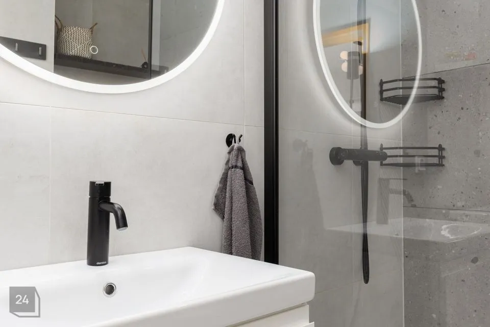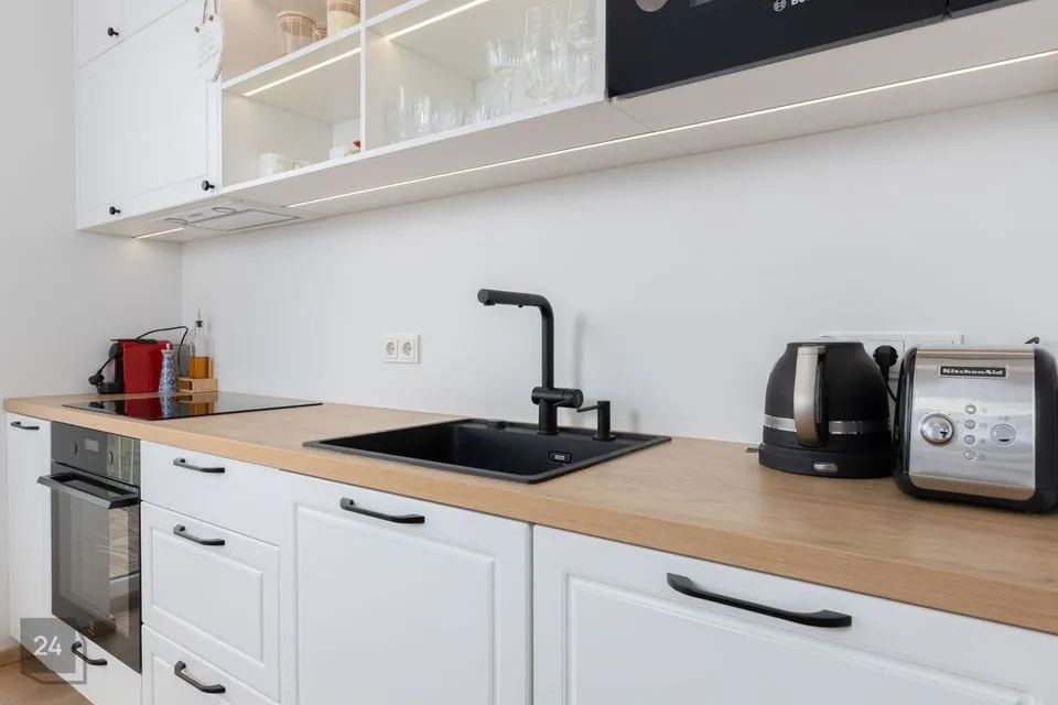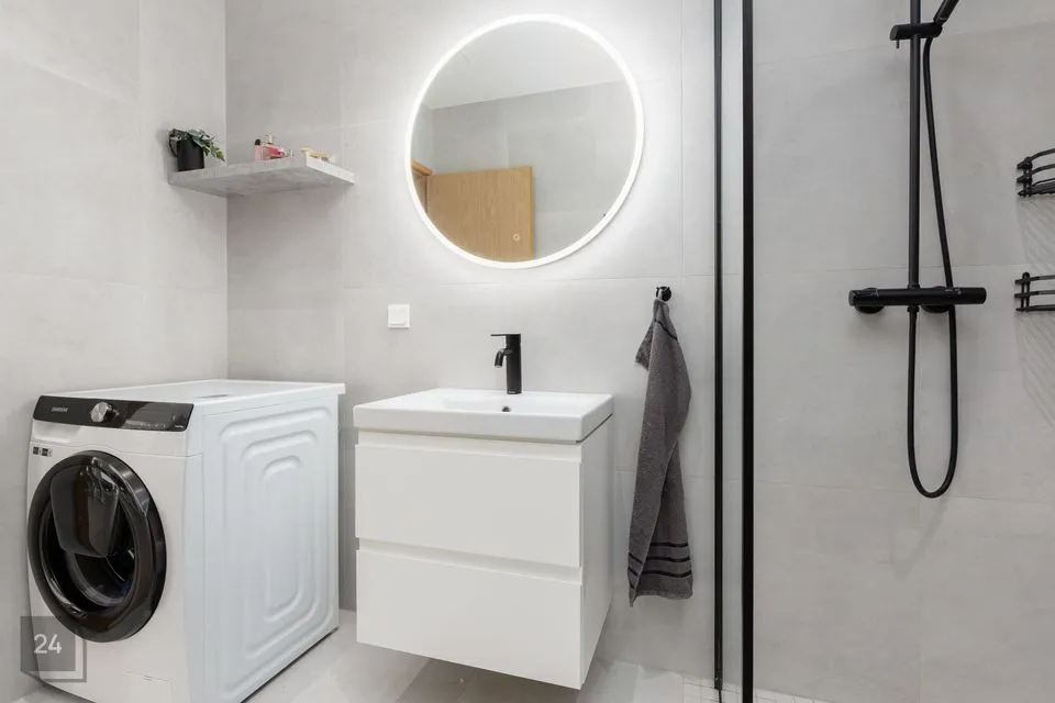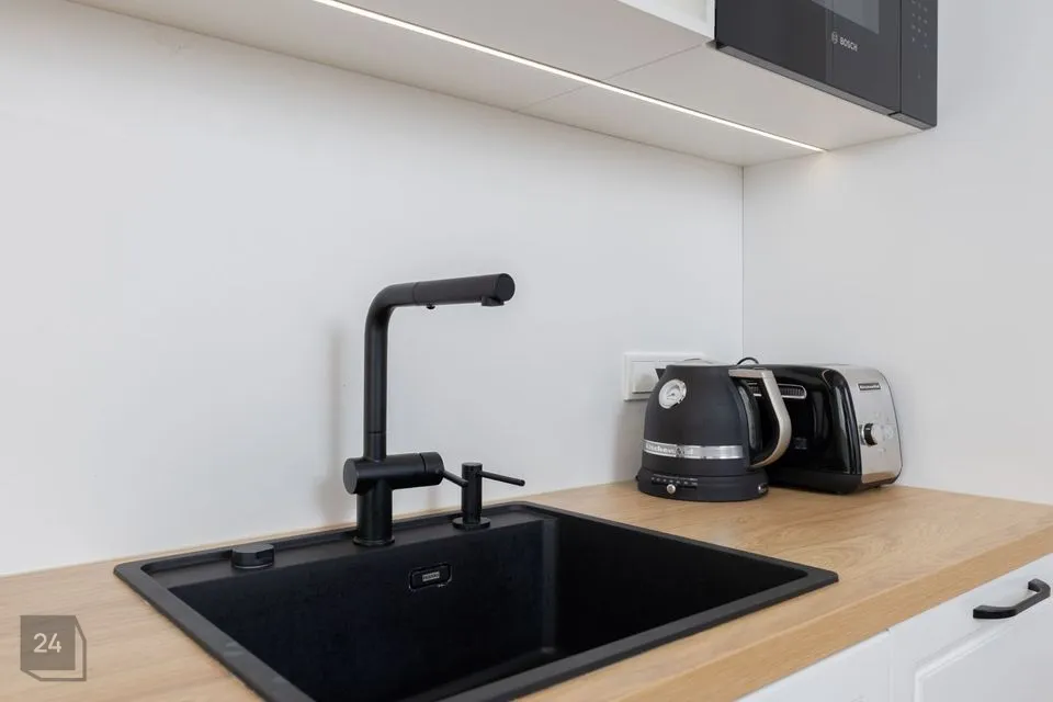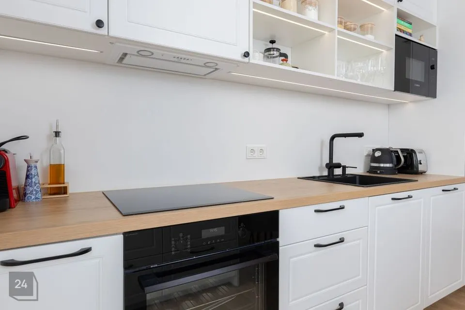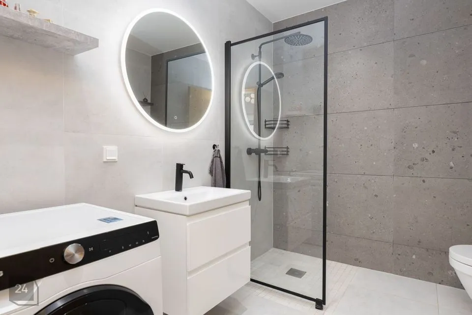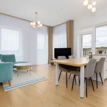 Hele ja hubane interjöör naturaalsetes toonides. Suured PVC aknad, kolmekordne klaaspakett– seest valged, väljast tumehallid – toovad tuppa rohkelt valgust ja avarust. Põrandatel naturaalset tamme tooni laminaatparkett. Ruumipõhiselt juhitav vesipõrandaküte, vannitoas lisaks elektripõrandaküte. Korteripõhine energiatagastusega mehaaniline sissepuhke-väljatõmbe süsteem, ventilatsiooniagregaat on peidus vannitoa lae taga. Lisamugavusena on elutoas konditsioneer. Kvaliteetne integreeritud köögimööbel koos tehnikaga. Rõdult avarad vaated – ideaalne koht hommikukohviks või õhtuseks lõõgastumiseks, sügavimmutatud terrassilaudis.