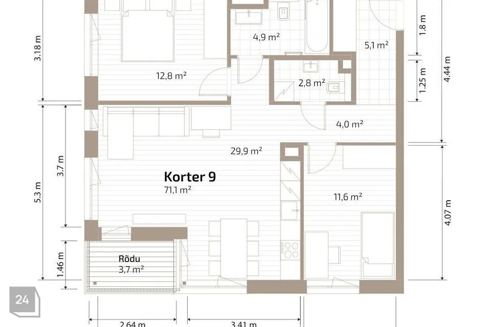 Korteri hinnale lisandub panipaiga ja kahe parkimiskoha maksumus, kokku 14 000 €.