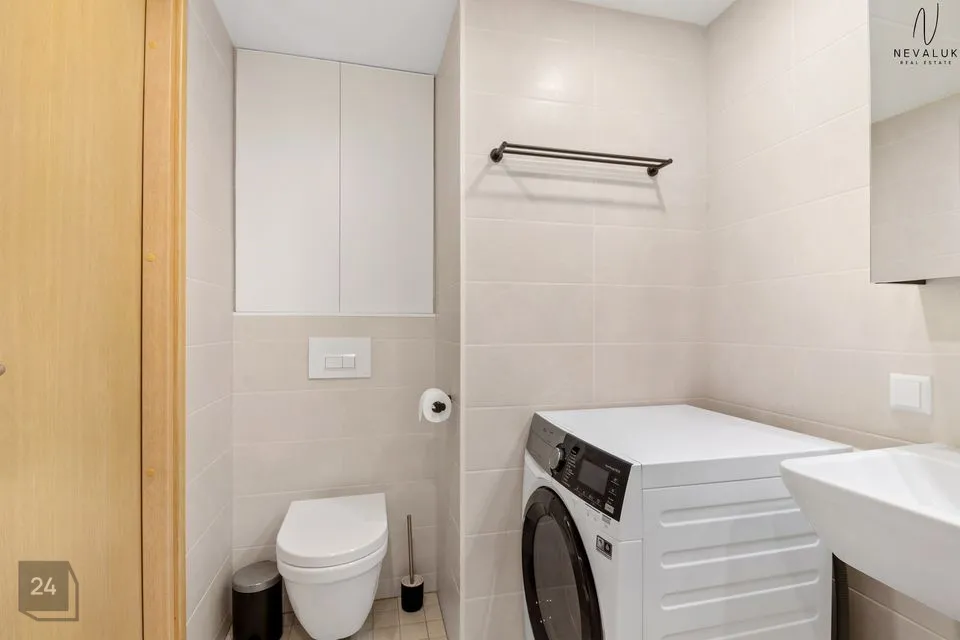 Vannituba on valgusküllane ja praktiliselt planeeritud. Siin on dušinurk eraldusklaasiga, kuivatiga pesumasin, valamu koos peeglikapiga ning lisariiulitega kapp. Lisaks on põrandaküte – ideaalne lisasoojus varahommikuti või jahedal sügisõhtul.
