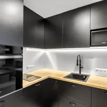 Köök on praktiliselt varustatud: integreeritud nõudepesumasin, külmkapp, ahi, induktsioonpliit ja mikrolaineahi – kõik vajalik mugavaks eluks on juba olemas.