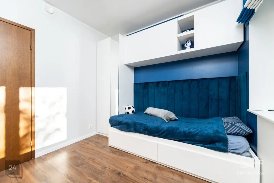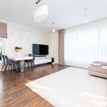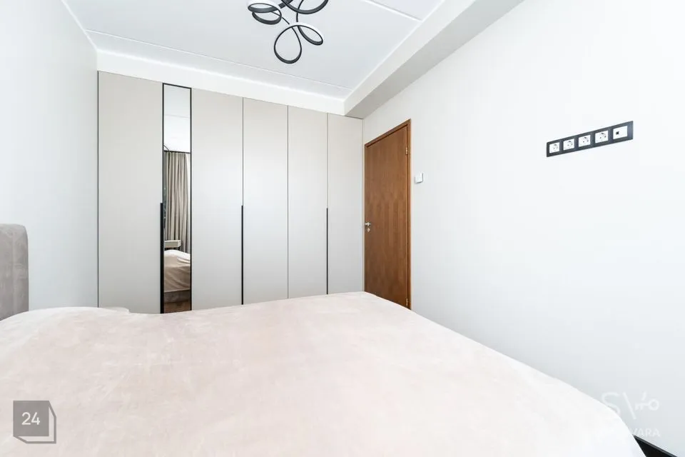В состав квартиры входят: просторная и светлая гостиная с открытой кухней, две спальни, прихожая, туалет и ванная комната. В квартире большие окна, которые обеспечивают простор и свет.