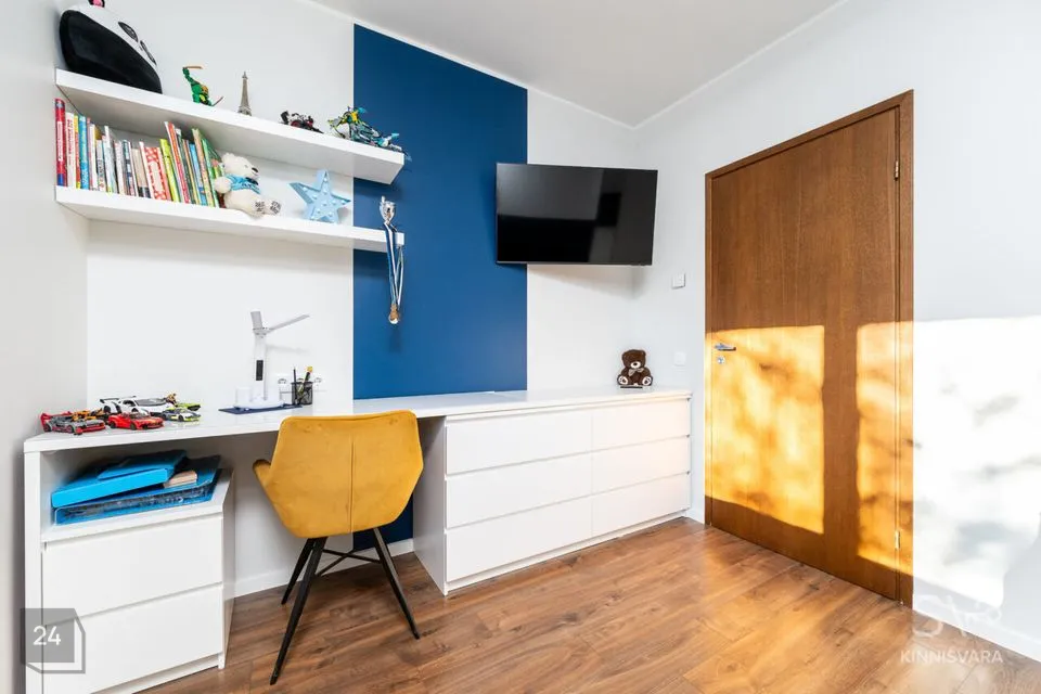 Korteri koosseisu kuuluvad avatud köögiga avar ja valgusküllane elutuba, kaks magamistuba, esik, wc ja vannituba. Korteril on suured aknad, mis tagavad avarust ja valgusrohkust.