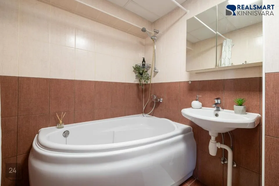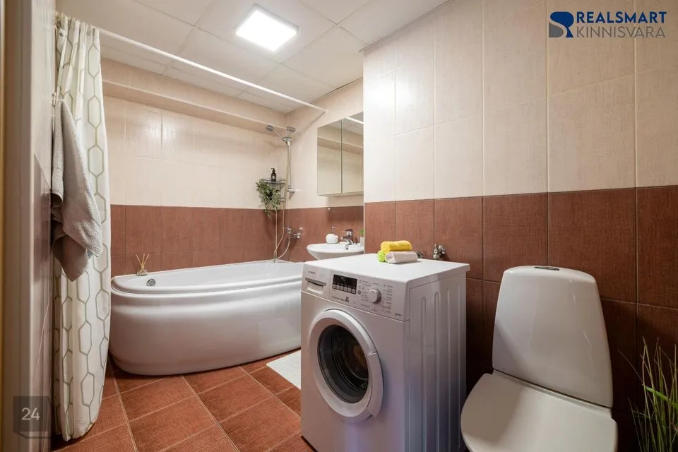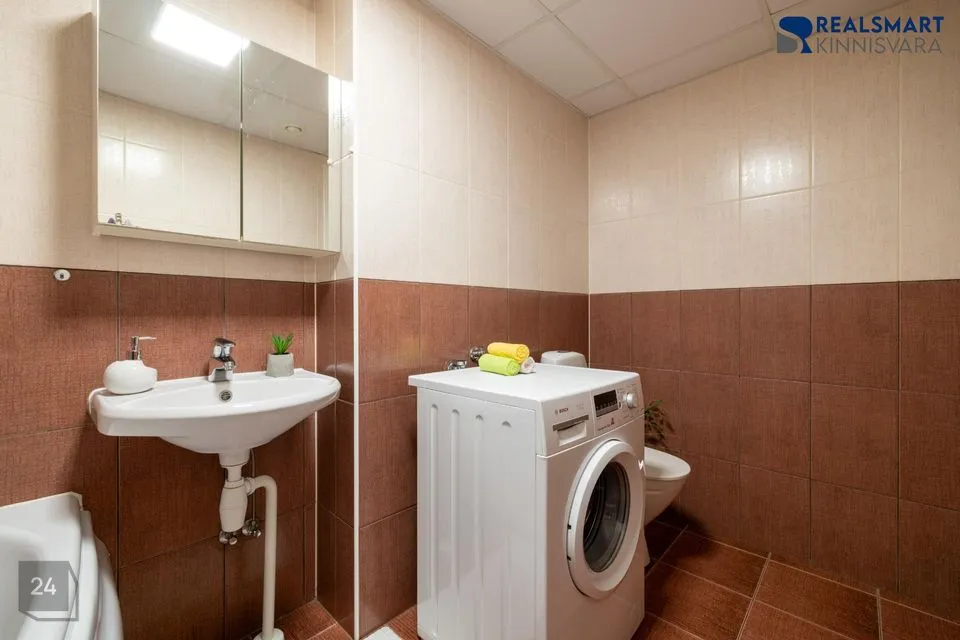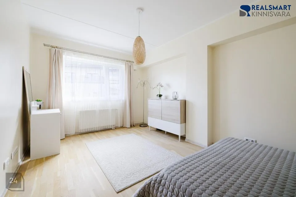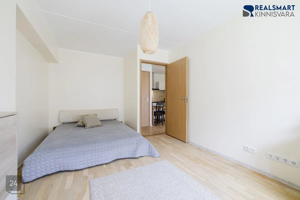 Elutoast edasi tulles ja vasakule pöörates satute aga magamistuppa, kus asub mõnusalt lai kaheinimese voodi. Viimane tuba magamistoa vastas on vannituba koos tualettruumiga. Vannitoas on lisaks vannile ka pesumasin, mis jääb korterisse. Vannitoas on võimalik kasutada soovi korral elektrilist põrandakütet.