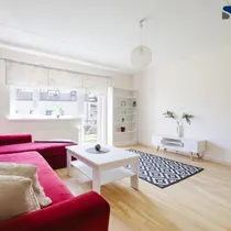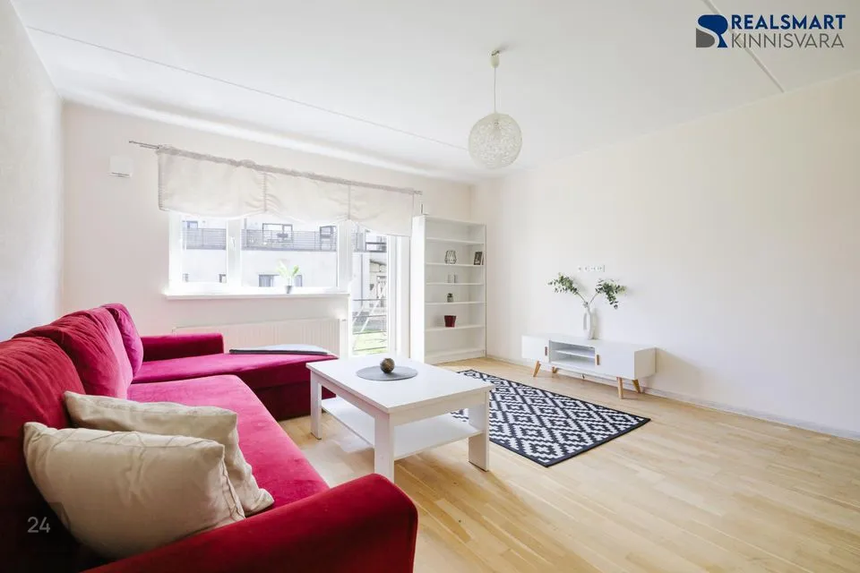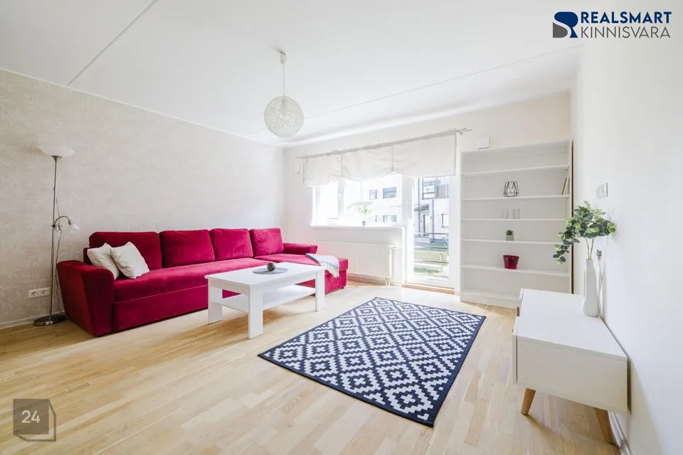Elutoast avaneb prantsuse rõdu maja sisehoovi poolsele küljele. Fotodel nähaolev elutoa punane nurgadiivan ei jää korterisse, kõik muu mööbel on soovi korral võimalik jätta korterisse.