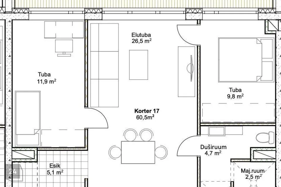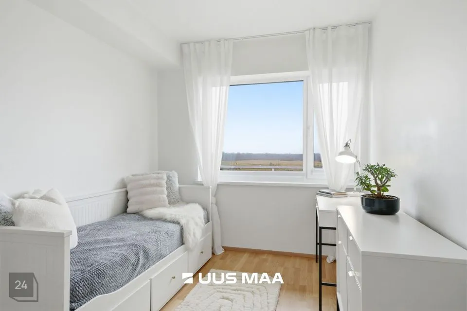 Korter on planeeringult hästi läbi mõeldud ning pakub mugavat kodust ruumikust nii perele kui ka neile, kes vajavad töötuba või eraldiseisvat külalistetuba.