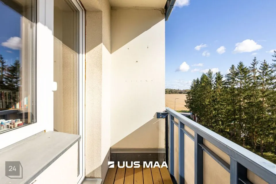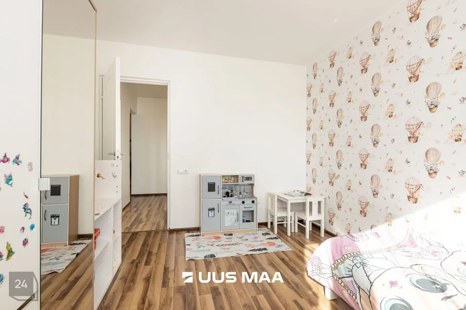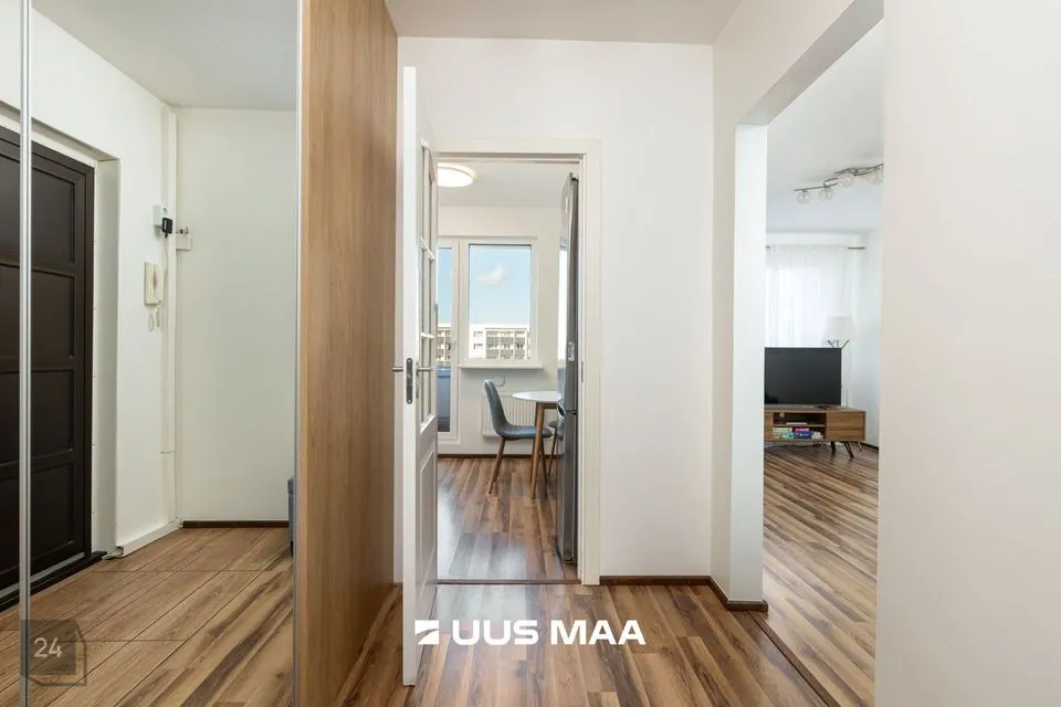 3-toaline korter asub 5-kordse maja neljandal korrusel ja on läbi maja planeeringuga. Selles on avar esik garderoobikapiga, eraldi köök, millest pääseb suurele rõdule, elutuba, eraldi WC ja duširuum, lastetuba ja suur magamistuba, millest pääseb maja teisel küljel olevale rõdule. Korter on hiljuti renoveeritud ja uus köök paigaldati sellel aastal.