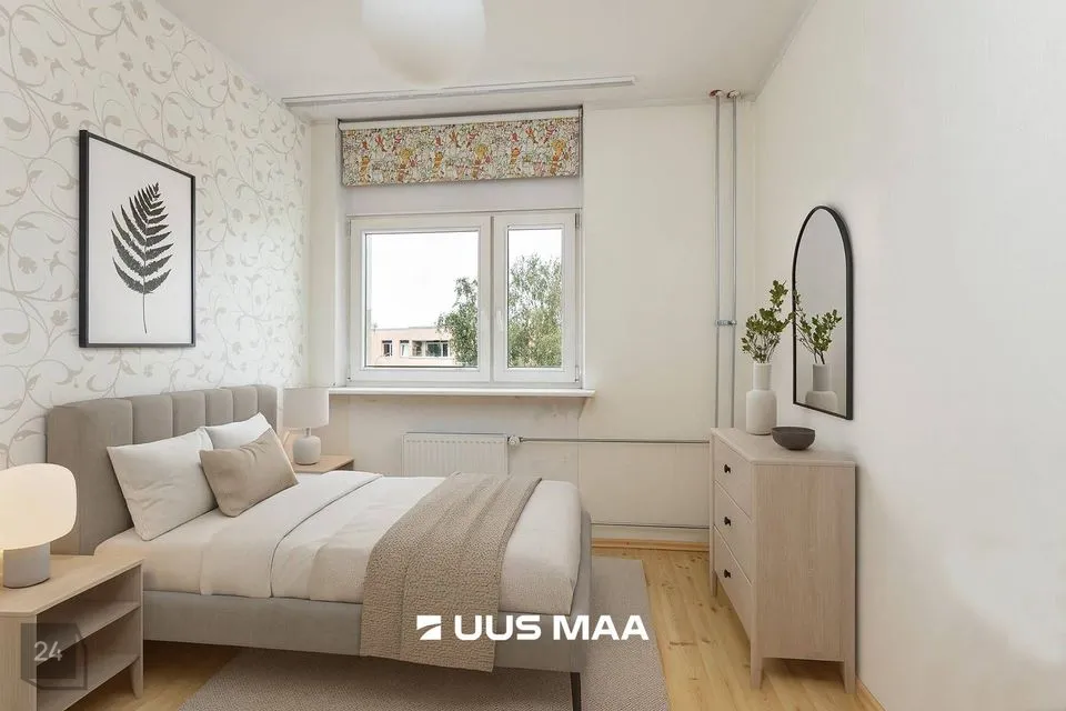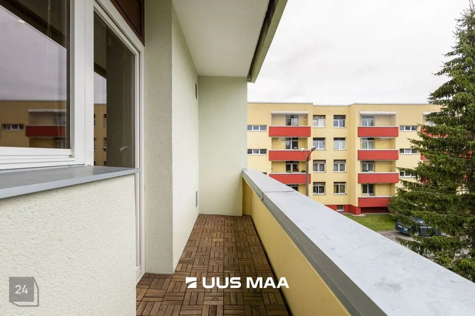 Korteris on avar esik, suur valgusküllane elutuba, kaks magamistuba, WC/vannituba ja köök, millest pääseb rõdule.
