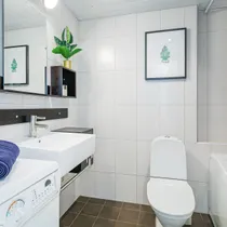 WC ja vannituba on koos. Vannitoas vann ja pesumasin.