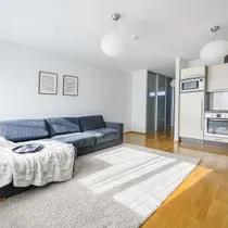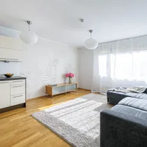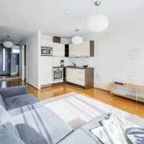 Põrandal naturaalne tammeparkett. Esiku põrand ja vannituba plaaditud. Küte autonoomsest gaasikatlast. Aknast vaade sisehoovi rohelusse.