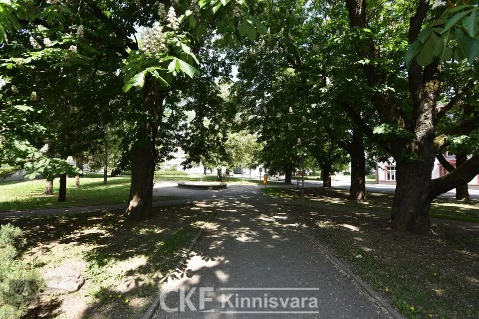 Maja kõrval on iidsete puudega kena purskkaevuga park.