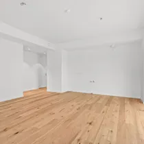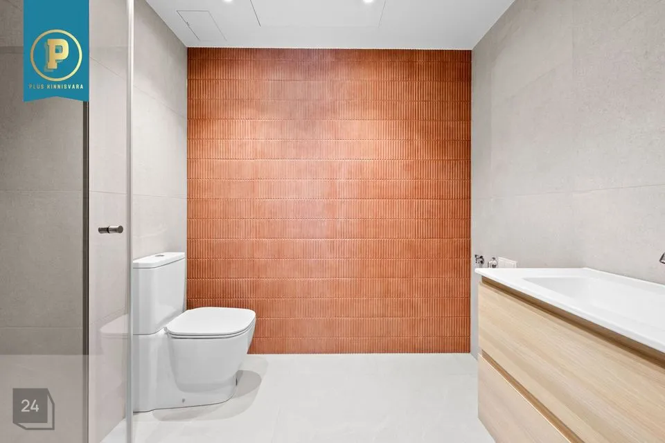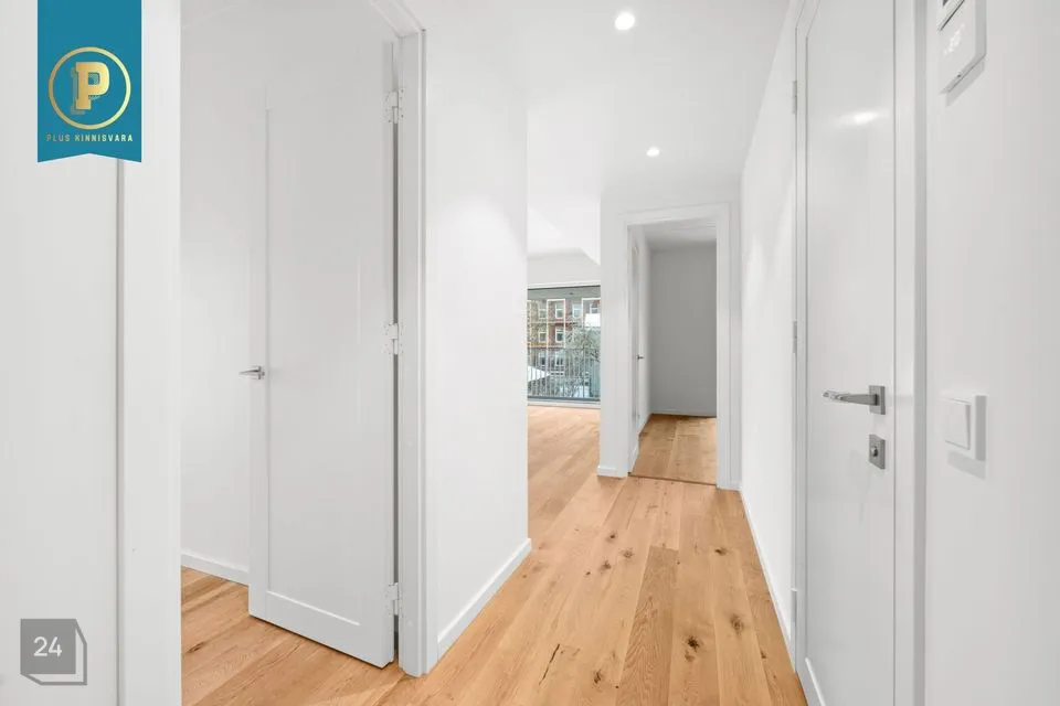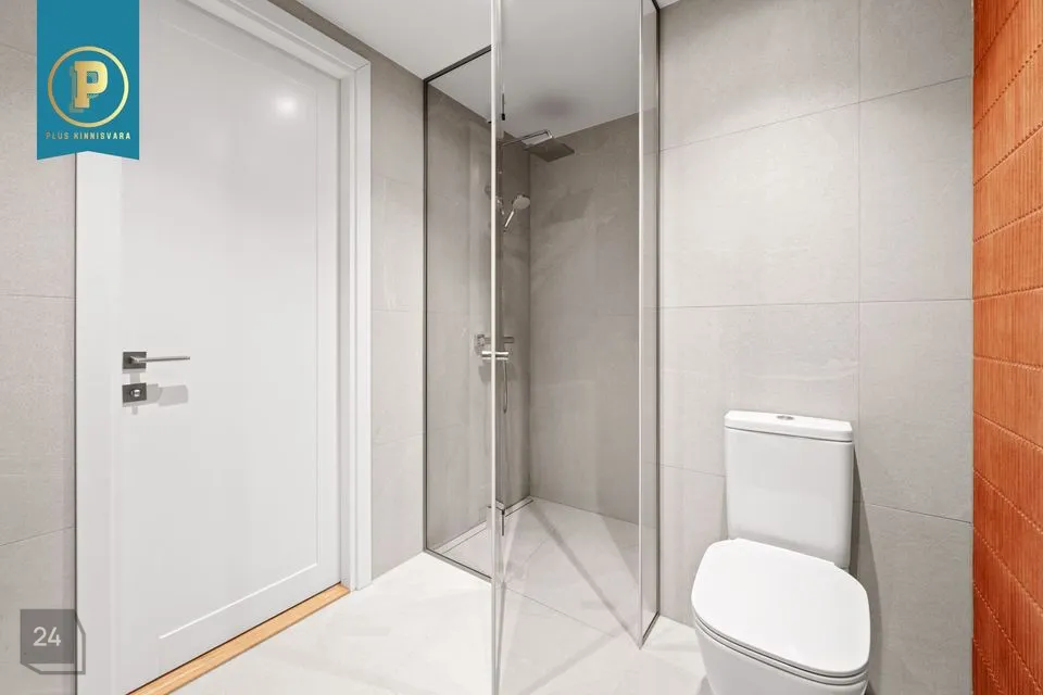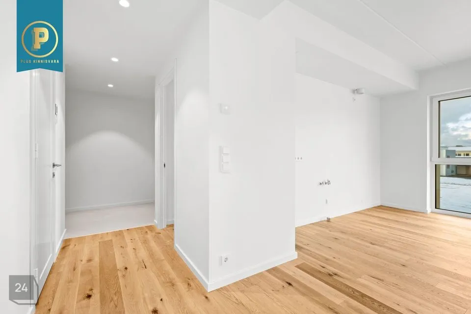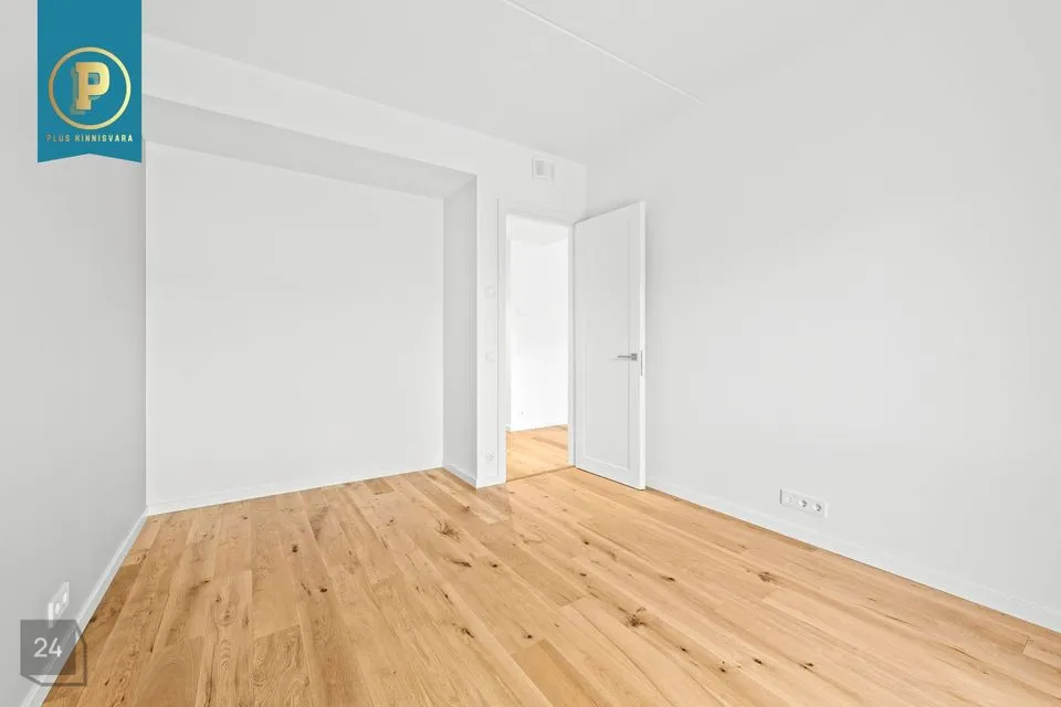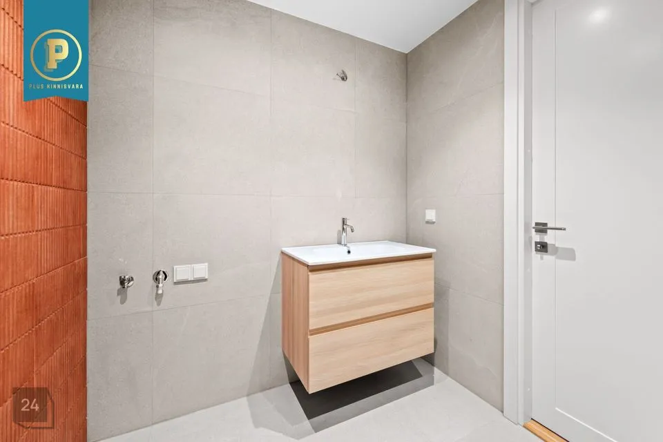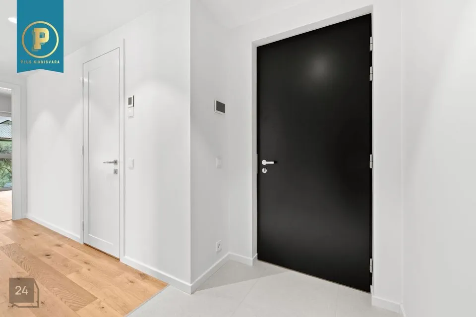 Siseviimistluses on kasutatud naturaalset tammeparketti, mis annab ruumidele sooja ja elegantse tunde. Seinad on värvitud heledates ja rahulikes toonides, mis loovad avara ja valge atmosfääri. Vannitoas on kasutatud aktsendiks terrakotaefektiga plaati.