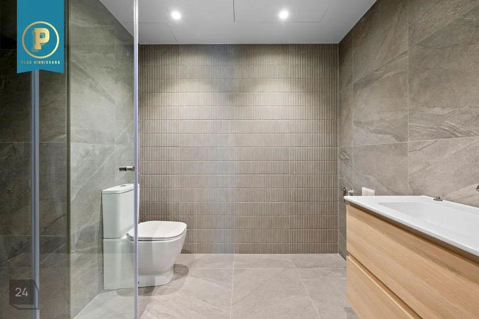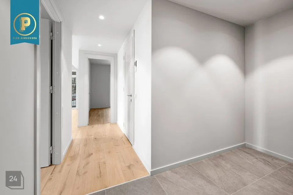 Siseviimistluses on kasutatud naturaalset tammeparketti, mis annab ruumidele sooja ja elegantse tunde. Seinad on värvitud heledates ja rahulikes toonides, mis loovad avara ja valge atmosfääri. Märgade ruumide seinad ja põrandad ning esiku põrand on plaaditud neutraalsetes toonides.
