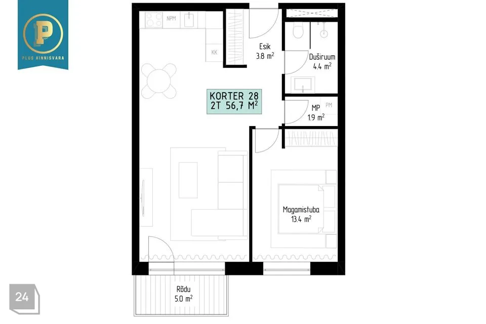 Korter nr 28 on väga mugava ja keskmisest suurema planeeringuga 2-toaline kodu, kus on esik, avatud köögiga elutuba, magamistuba, vannituba-tualett, rõdu ning lisaks veel majapidamisruum. Elutoast pääseb 5 m2 suurepäraste vaadetega rõdule – täiuslik koht hommikukohviks või õhtuseks lõõgastumiseks.