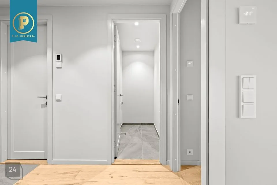 Siseviimistluses on kasutatud naturaalset tammeparketti, mis annab ruumidele sooja ja elegantse tunde. Seinad on värvitud heledates ja rahulikes toonides, mis loovad avara ja valge atmosfääri. Vannitubade seinad ja põrandad ning esiku põrand on plaaditud.