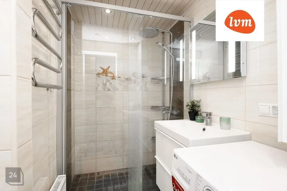 Eraldi asuvad nii WC kui vannituba, olemas elektriline ventilatsioon. Niisketes ruumides elektri põrandaküte, mida saab vajadusel kasutada.