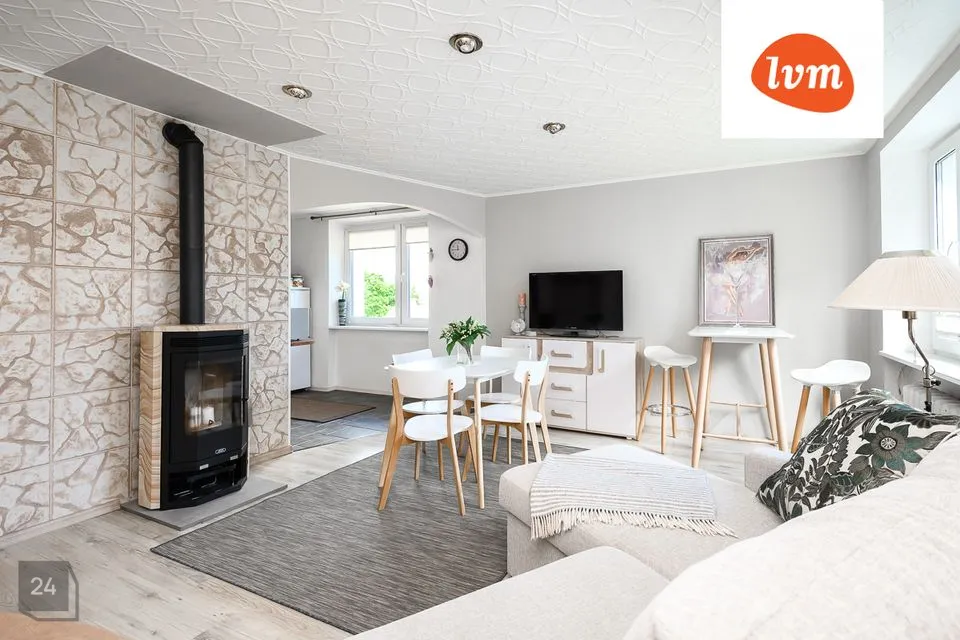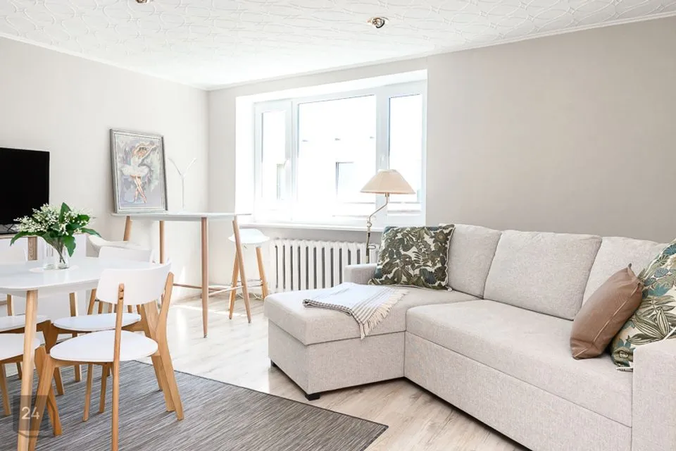 Avatud köögiga elutuba ja eraldi magamistuba.