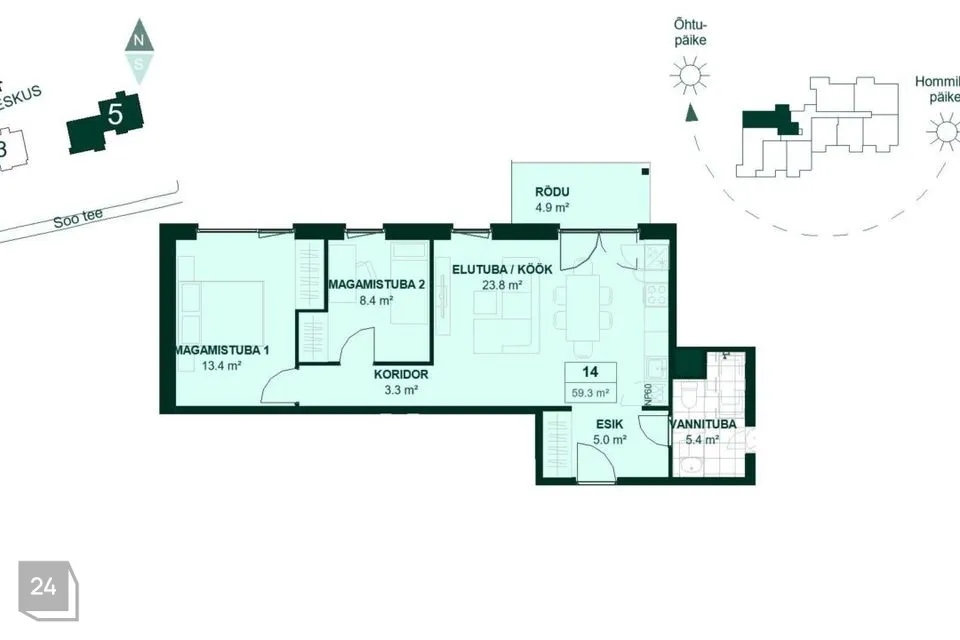 Siin valmivad 2026. aasta suvel neljakorruselised A-energiaklassi korterelamud, mille katusel paiknevad päikesepaneelid aitavad kodukulud kontrolli all hoida. Valikus on kahe- kuni neljatoalised korterid suuruses 43,2–82,1 m² – kõik suurte akende ja läbimõeldud planeeringutega, et kodus oleks rohkelt valgust ja mugavalt ruumi igale pereliikmele ja kõigele vajalikule.
