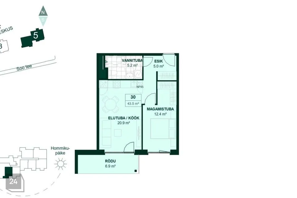 Siin valmivad 2026. aasta suvel neljakorruselised A-energiaklassi korterelamud, mille katusel paiknevad päikesepaneelid aitavad kodukulud kontrolli all hoida. Valikus on kahe- kuni neljatoalised korterid suuruses 43,2–82,1 m² – kõik suurte akende ja läbimõeldud planeeringutega, et kodus oleks rohkelt valgust ja mugavalt ruumi igale pereliikmele ja kõigele vajalikule.