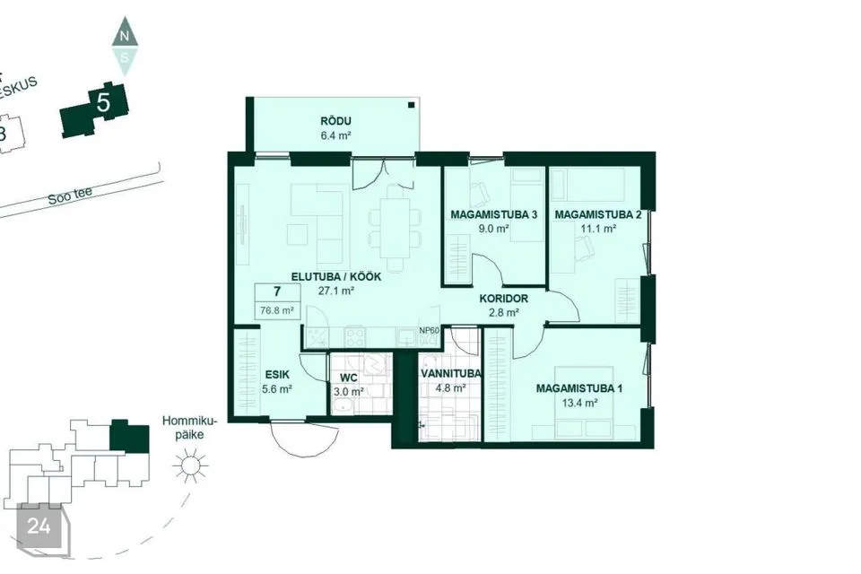 Siin valmivad 2026. aasta suvel neljakorruselised A-energiaklassi korterelamud, mille katusel paiknevad päikesepaneelid aitavad kodukulud kontrolli all hoida. Valikus on kahe- kuni neljatoalised korterid suuruses 43,2–82,1 m² – kõik suurte akende ja läbimõeldud planeeringutega, et kodus oleks rohkelt valgust ja mugavalt ruumi igale pereliikmele ja kõigele vajalikule.